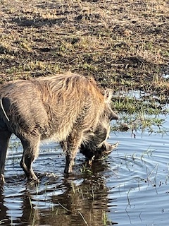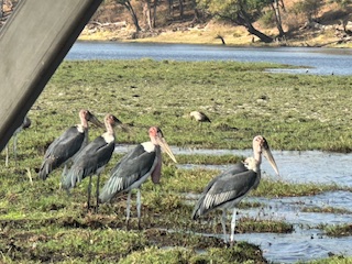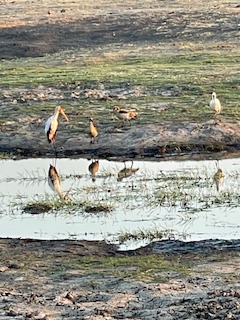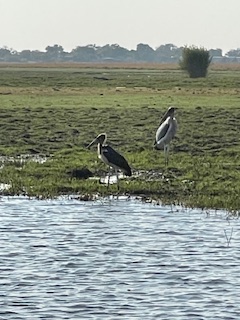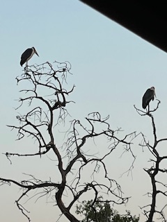 Went out in the morning on our last day in Chobe and saw so many birds. Because we left before sunrise many had not awakened yet. The maribou storks were sitting up in the tree and don’t some down until the ground has warmed up and they can ride down on thermals. They are so big they would never be able to eat enough to fly if they didn’t take advantage of this phenomenon. I’m going to just make a list in my final blog post because my notes have bird names scattered throughout and I’m not sure if I have them all right or if I’ve already mentioned them.