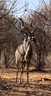 We saw kudus for the first time which are brown and in the elk family. They also have faint stripes that, like zebras, are as unique as fingerprints. The males have impressive horns that curl as they grow – up to five curls! They have a weird little hump on their back that is pure muscle that allows them to just 2 meters straight up into the air. This allows them to escape predators by jumping over obstacles that the predators cannot. I’m telling you, Africa is a master class in how animals have evolved to survive, whether they be predators or prey.