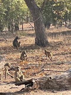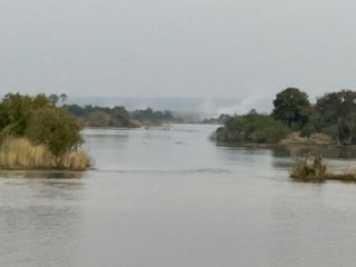 I am sitting here on the banks of the Zambezi. Our guide called our room at 8:40 and asked if we were coming? We totally slept through our wake up time. So what we missed this morning was going to the “pool” side of the falls and not sure what else, but we’re cool with it. I got my back exercises in (I was feeling it start to complain yesterday) and am now enjoying the peace and quiet. As usual, after four days of lovely people and the socializing that just naturally occurs on such tours, I’m exhausted and need my space. John and Larry did arrive last night in time for the boat ride which was nice for them. Today they will go out to try to find some clothes. Lord knows what native gear they will return with!