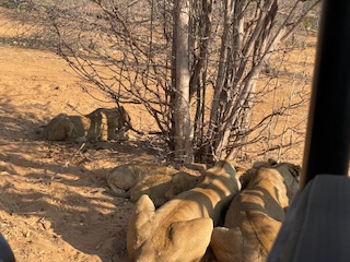 Why do the lions and other animals we see let us get so close? They have acclimated to these big noisy “animals” coming by now and again and not shooting them. They do not see us as individuals in the jeeps but just one big individual that they have learned does not harm them and which they know is probably too big to take down. This would change if we were to step out of the vehicle and become an individual. At one point one, the young man in our group – 15 yr old – was handed a bottle of water to transfer to the next jeep that was parked within tossing distance. He misunderstood and started to step out. Like a physical therapist who is gait training a patient who falters, the guide had grabbed the kid and pulled him back into the seat in a flash.