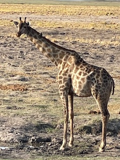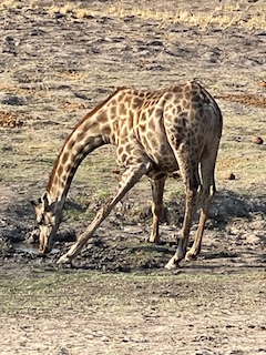 One of our last hours in Chobe found us watching a giraffe spread its legs to reach the water, something Al always wanted to see. This particular lady was pregnant – 14 months gestation for these graceful ladies…