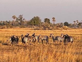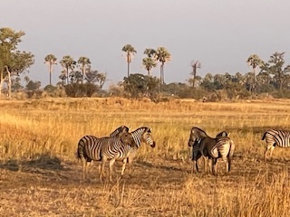Got close to zebras again but they decided we were too close and took off galloping; if you saw a sudden dust cloud on the other side of the world it was probably blown in from the Okavanga Delta after that. Zebras are Botswana’s national animal and our guide told us the symbolism is the hope that black and white can all get along. Wonderful sentiment, but just as we were contemplating that a couple of zebras got into it and they were vicious fighters, kicking and biting each other.