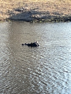Took a break next to a riverlet and watched the hippos snort and snuffle their way through the water. Pretty funny stuff, actually, these big manatee-like creatures bobbing along. I took some videos, not sure how they’ll turn out.