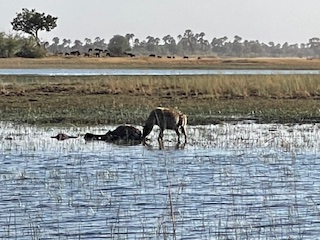 It is now time to leave Chobe National Park. I was hoping to get back to this so I could fill in the blanks and add some photos, but yesterday was a full day with a 5 a.m. safari and a 3 p.m. safari. In between I wrote this and never was able to get back to download some photos. Yesterday we saw it all – elephants, giraffed,kudus, more impala (one in pieces as we watched an entire pride of lions feast on it) and more. This morning we are headed to Okavango Delta where we stay in tents and have to be escorted everywhere by guards as we will be IN it. There will be no internet etc so I wanted to get this posted. See you on the other side. I’ll be writing offline and I’m hoping my photos transferred to the laptop from my phone now so I’ll be able to catch up. Here are just a few photos from today to wet your whistle: