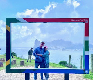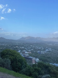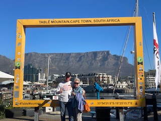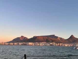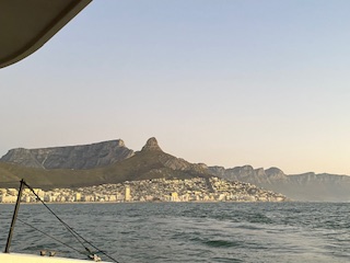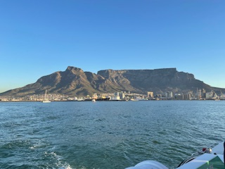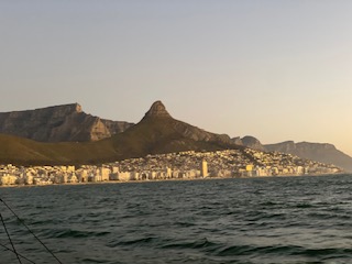 After lunch we were free to wander and took a shuttle to the Waterfront, which is the San Francisco Fisherman’s Wharf of Cape Town. There’s a real live shopping mall and some small souvenir shops. We opted to take a sunset cruise with some of our fellow travelers and it was well worth it, with lovely views of the city, Table Top Mountain and the headlands. Speaking of the SF Bay Area it is similar in topography and I really thought I had a house somewhere on the other side of the headlands.