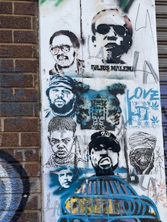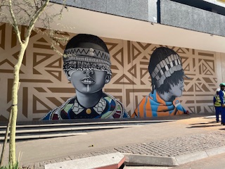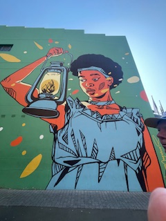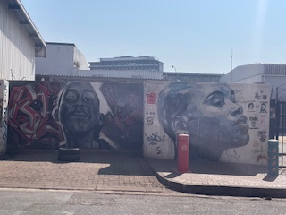He took us to the solitary tourist street about two blocks long with beautiful murals commemorating the “revolutionaries”. He took us through the Aglo-Boer war district which was a war over gold, imagine that. The buildings there were all built with gold money and along the way were vestiges of the times – railroad cars, various digging machines. (Apologies for the third grade vocab but hey – ) I was very sad as we went through some of the more creative areas – wholesale ribbons, for example – as these are places I certainly would wander into in just about any other city. Our guide assured us it was not safe during the day or the night, not with him or without him. I asked what might happen and basically it was being held up – and refusing at one’s own risk.