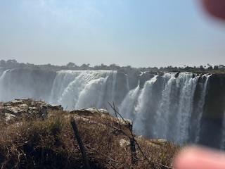 On to Victoria Falls where we spent a few hours hiking along the rim across the chasm from the falls; it was very hot but the spray was non-stop and lusciously refreshing at every overlook. It was only after the trail headed back to the parking lot that it got to Grouchy Mary Level hot, but a little carton of ice cream solved that problem right away. I do not understand the people lounging in the pools on the top of the falls. Supposedly you are tied with a rope so you don’t go over the edge but no thank you no thank you no thank you. Some of the young, immortal people we could see frolicking a bit on the rocks around the pools just looked like an accident waiting to happen and I don’t want to know just how many accidents DO happen.