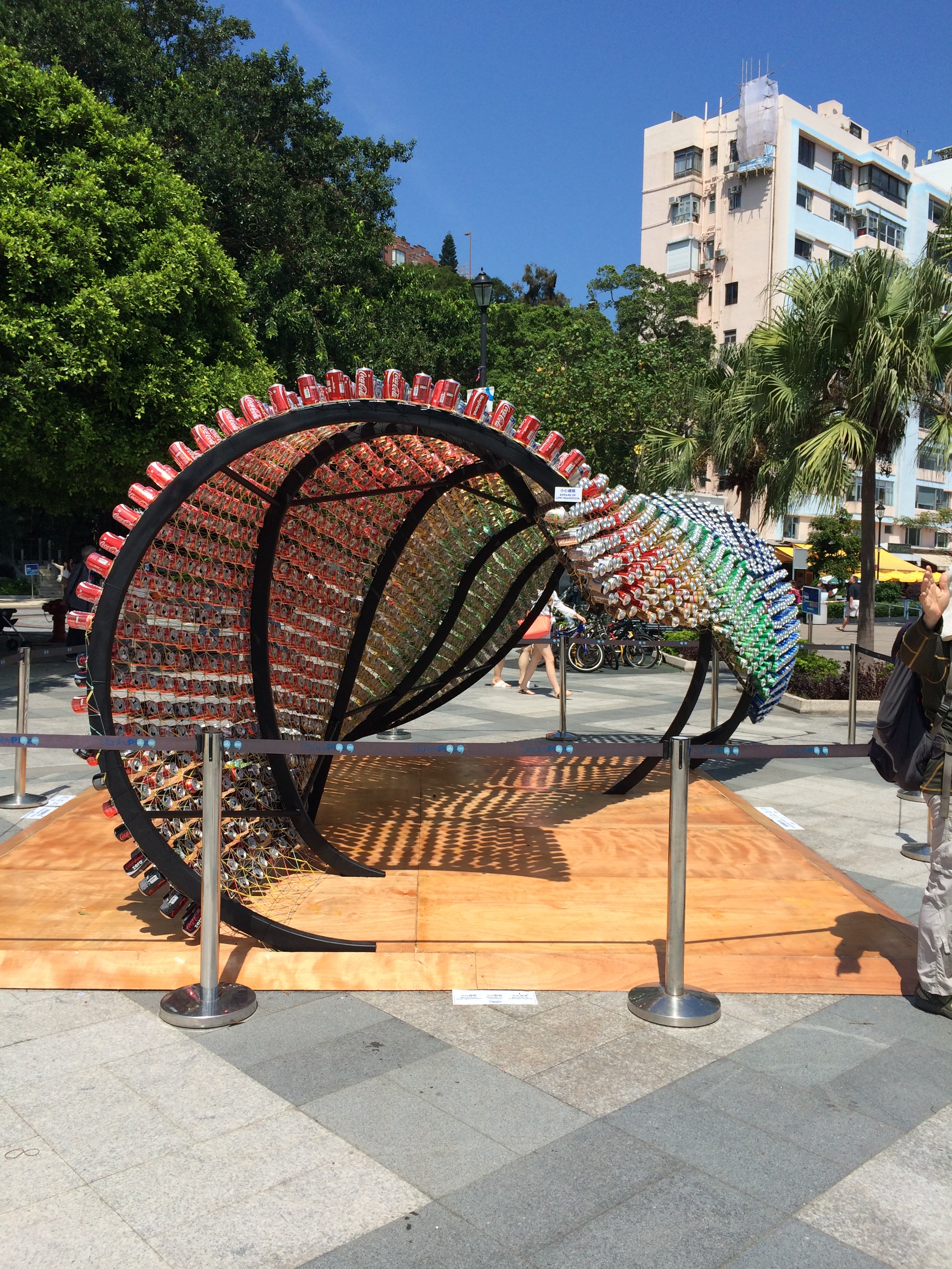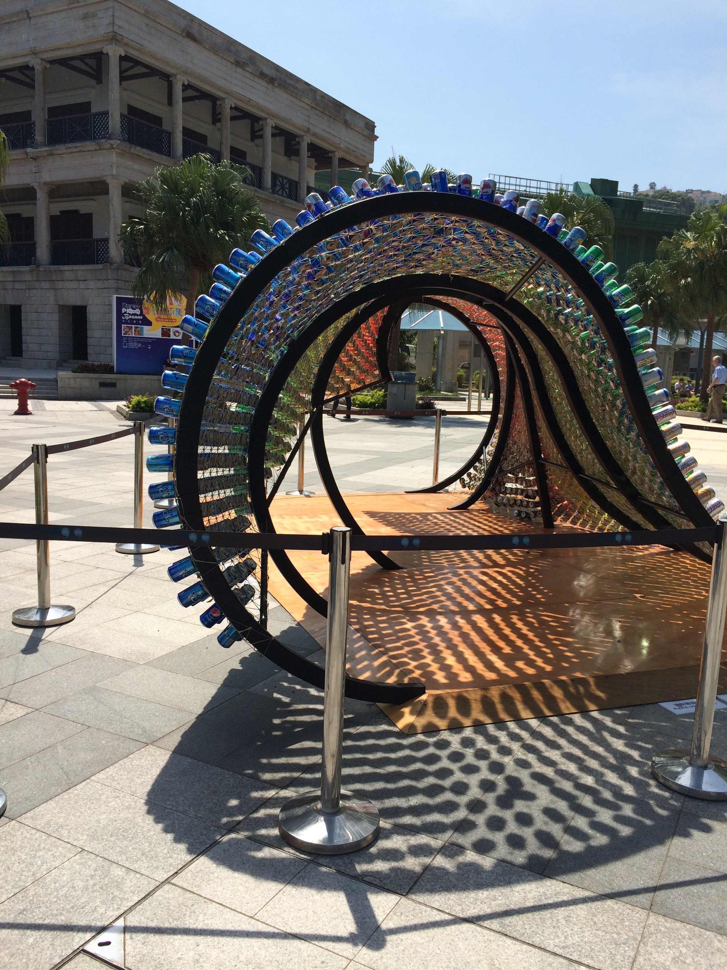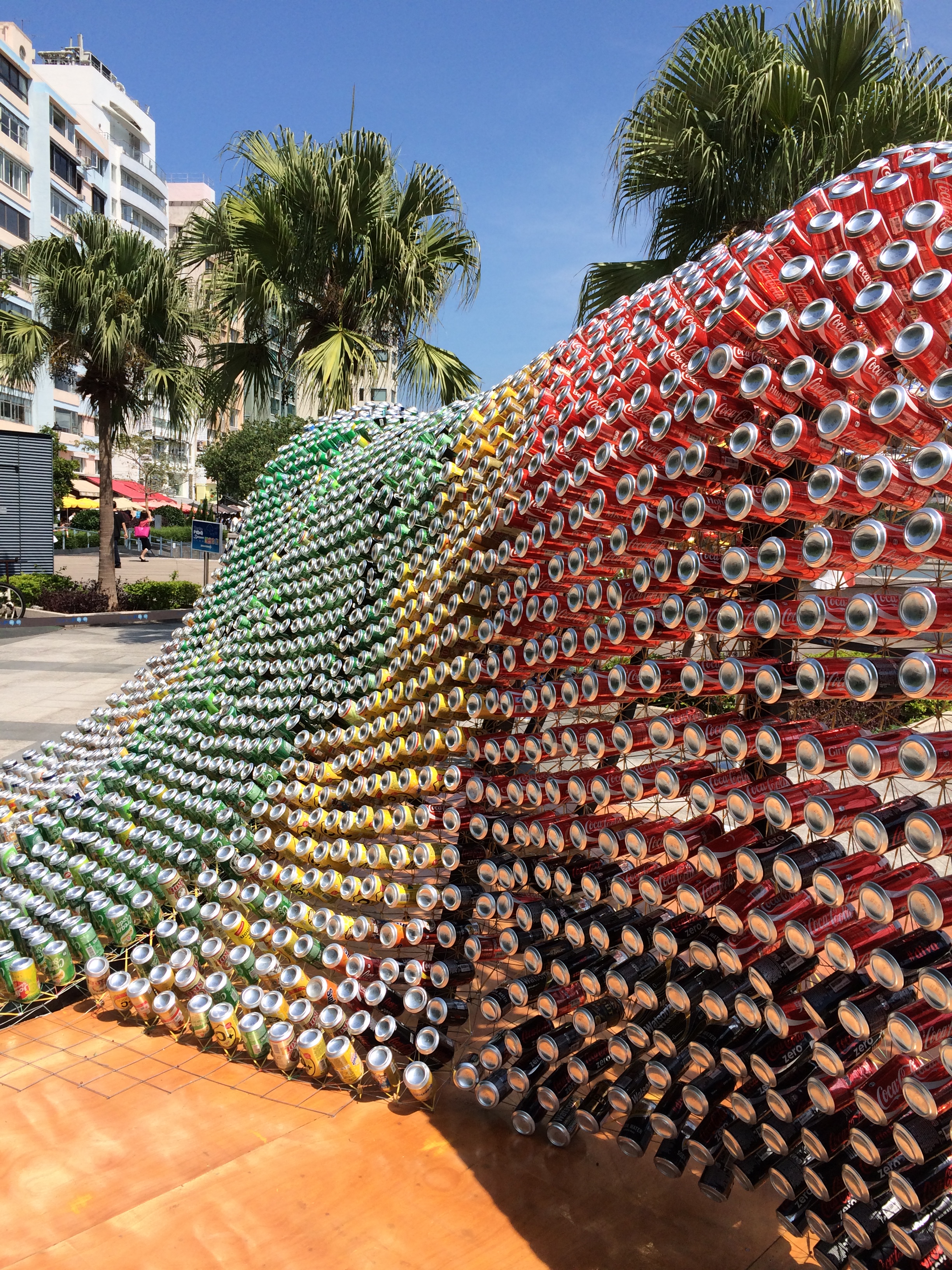More photos of the area around the harbor, including a wave sculpture made out of soda cans: