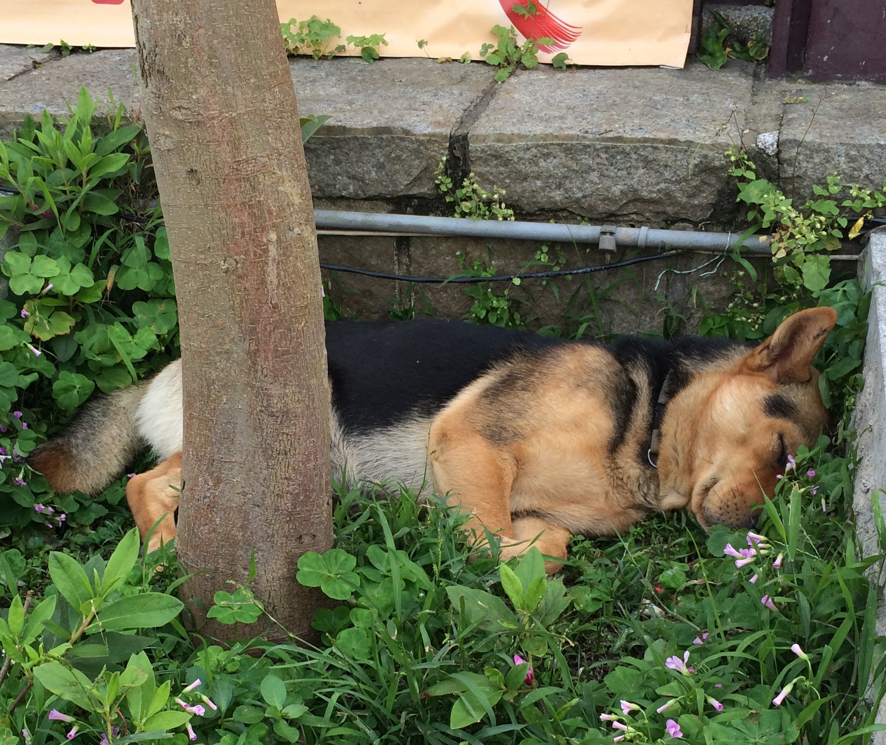 This snuggly guy was one of the many dogs floating around, this one at Po Lin Monastery at the Big Buddha. He and the others roaming around had apparently not read the “no dogs” signs. This one was totally “out” in a tree box. Kind of how I felt and have felt since getting home. Jet lag is no joke. Should have taken a day off work for sure – live and learn. At any rate I like this photo because he is yet another example of how animals teach us how to totally relax. He was oblivious to everything around him, happily slumbering.