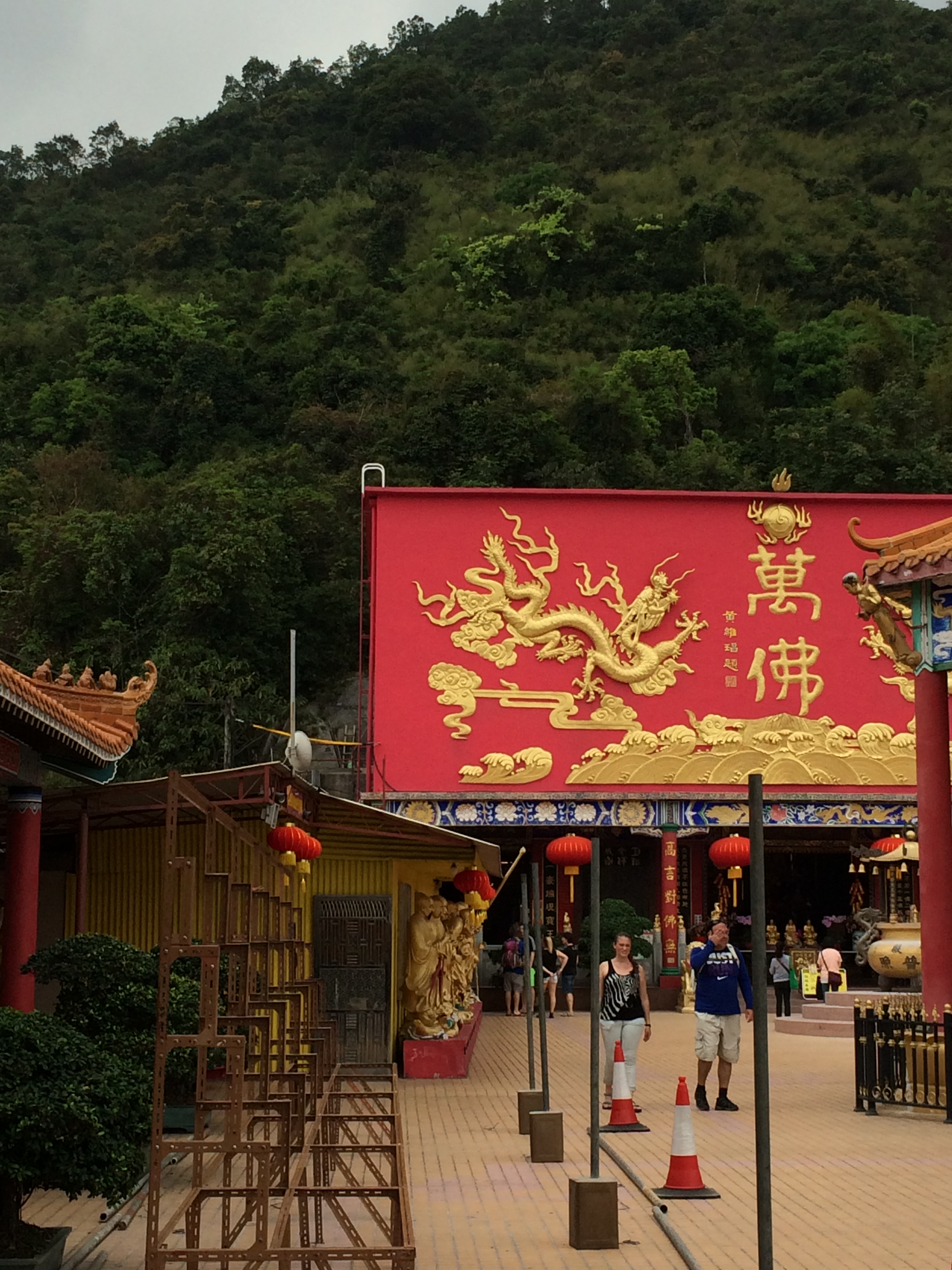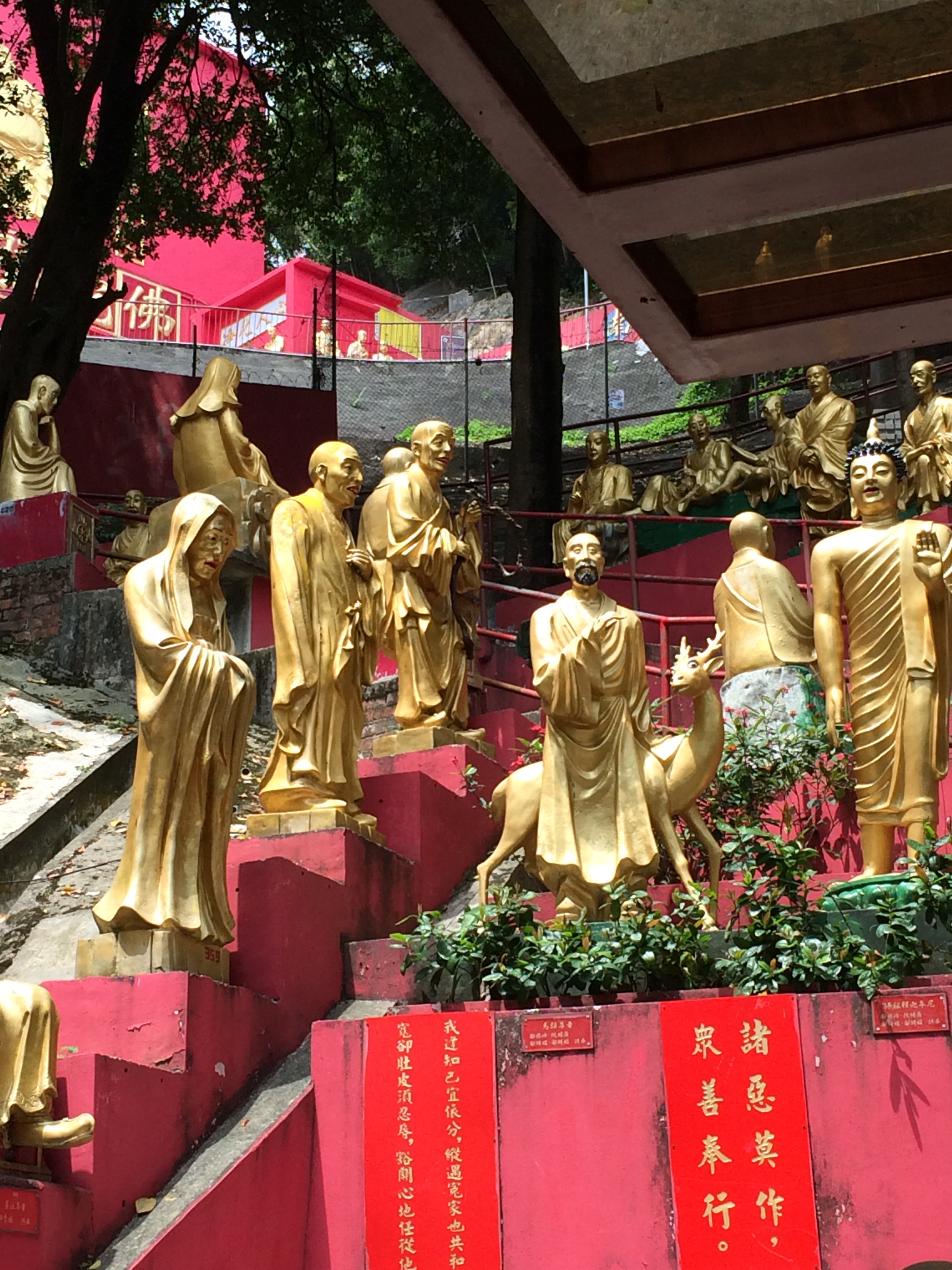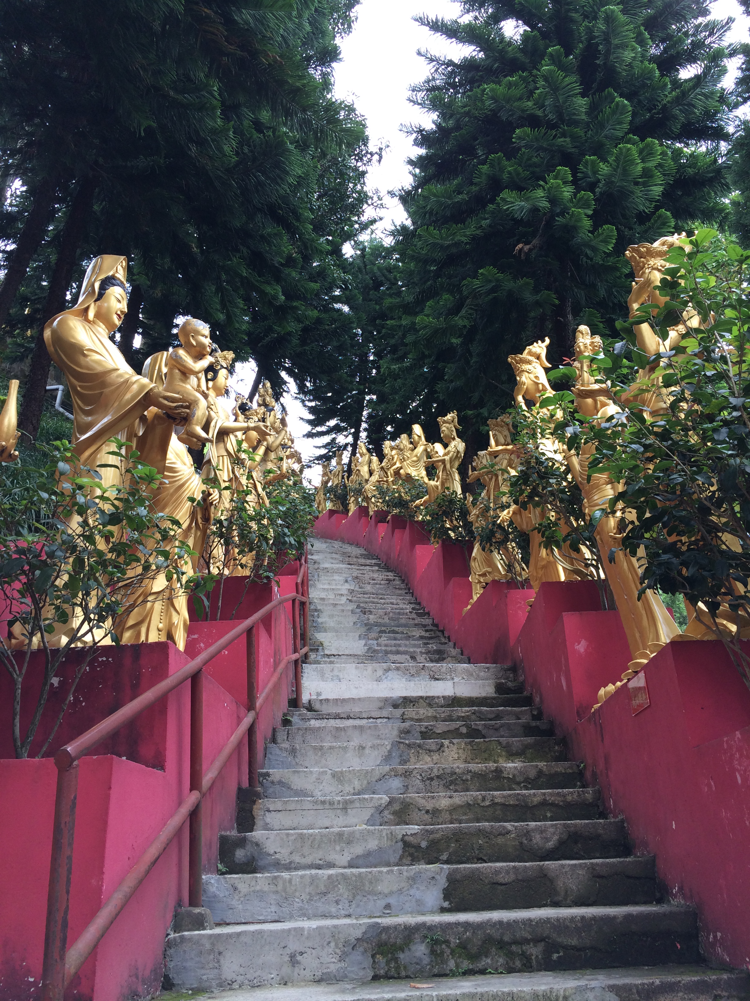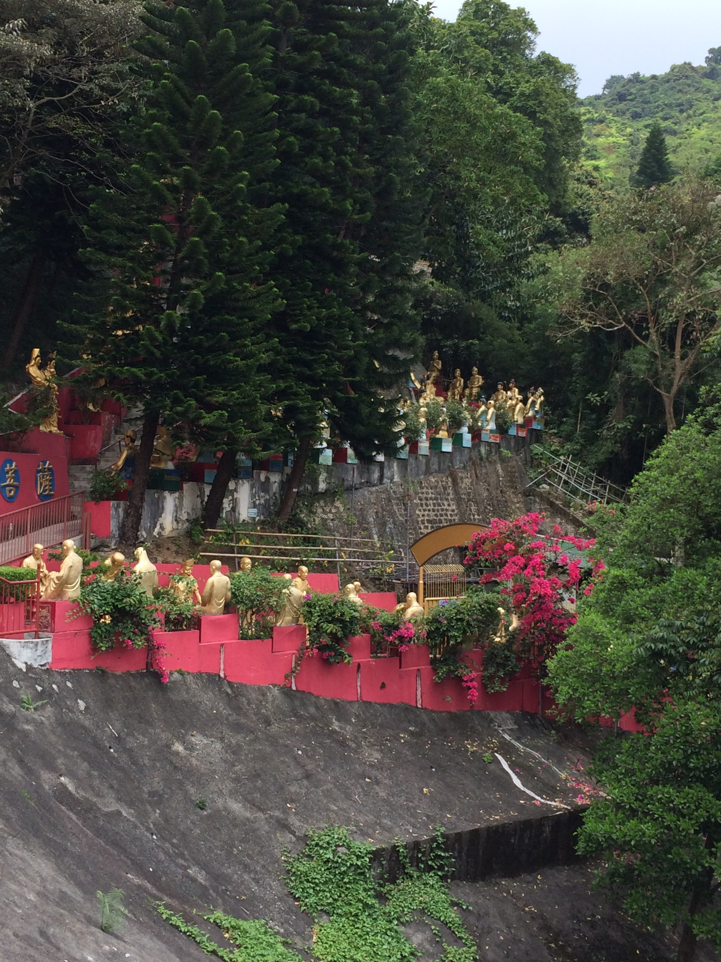 One of my choices the day before had been Ten Thousand Buddhas Monastery (Man Fat Tsz). It is kind of an out of of the way place and is not widely publicized by the tourist industry in Hong Kong because some of the structures were not considered safe by the government and so it was not encouraged that tourist signs be put up directing how to get there. Just my kind of place! When we arrived it appeared that some work was being done to rectify that situation – some of the slopes had retaining walls and signs that said they were ok by the government agency involved. The pagoda, which is advertised online as being accessible to walk up the stairs inside to the tip top was closed and being worked on.