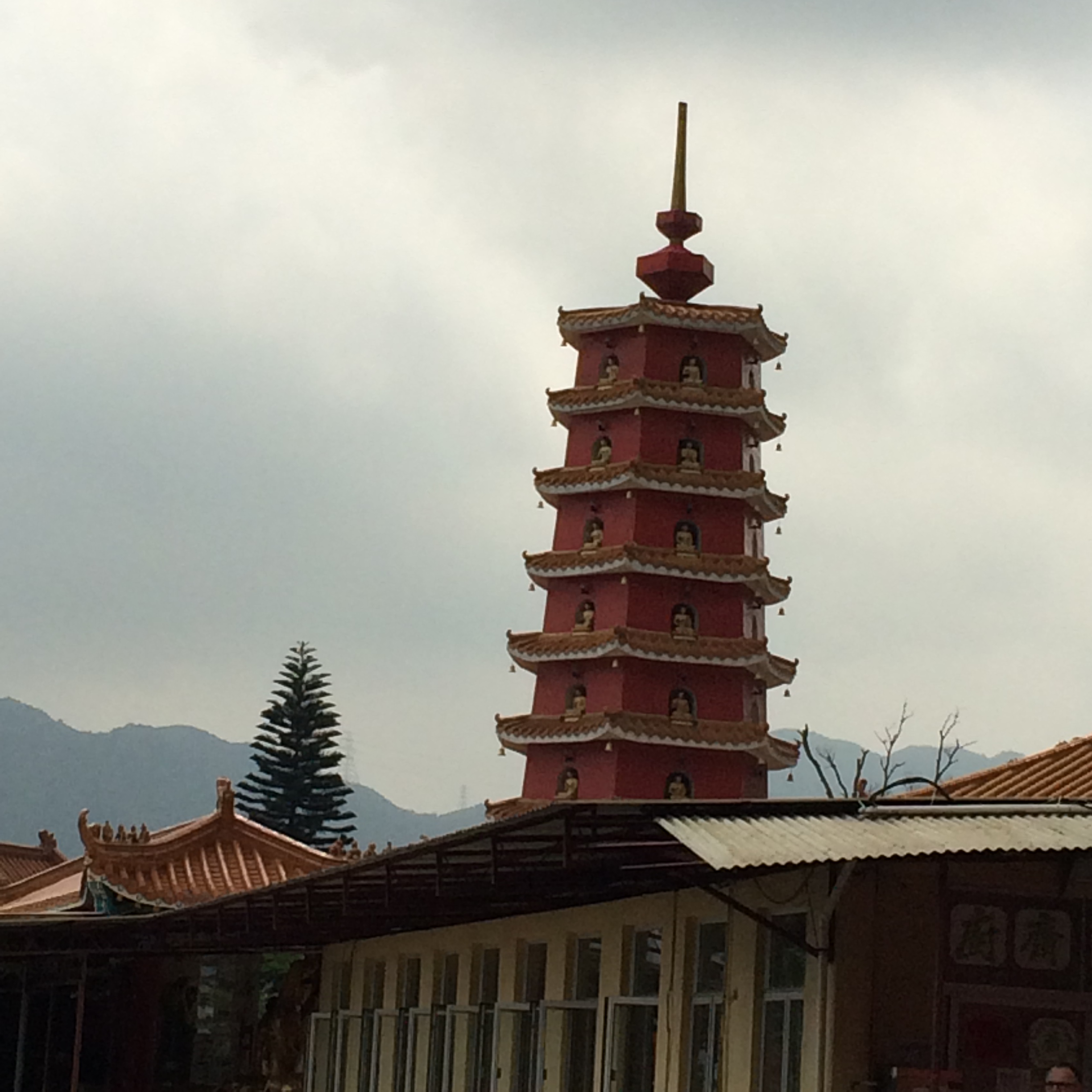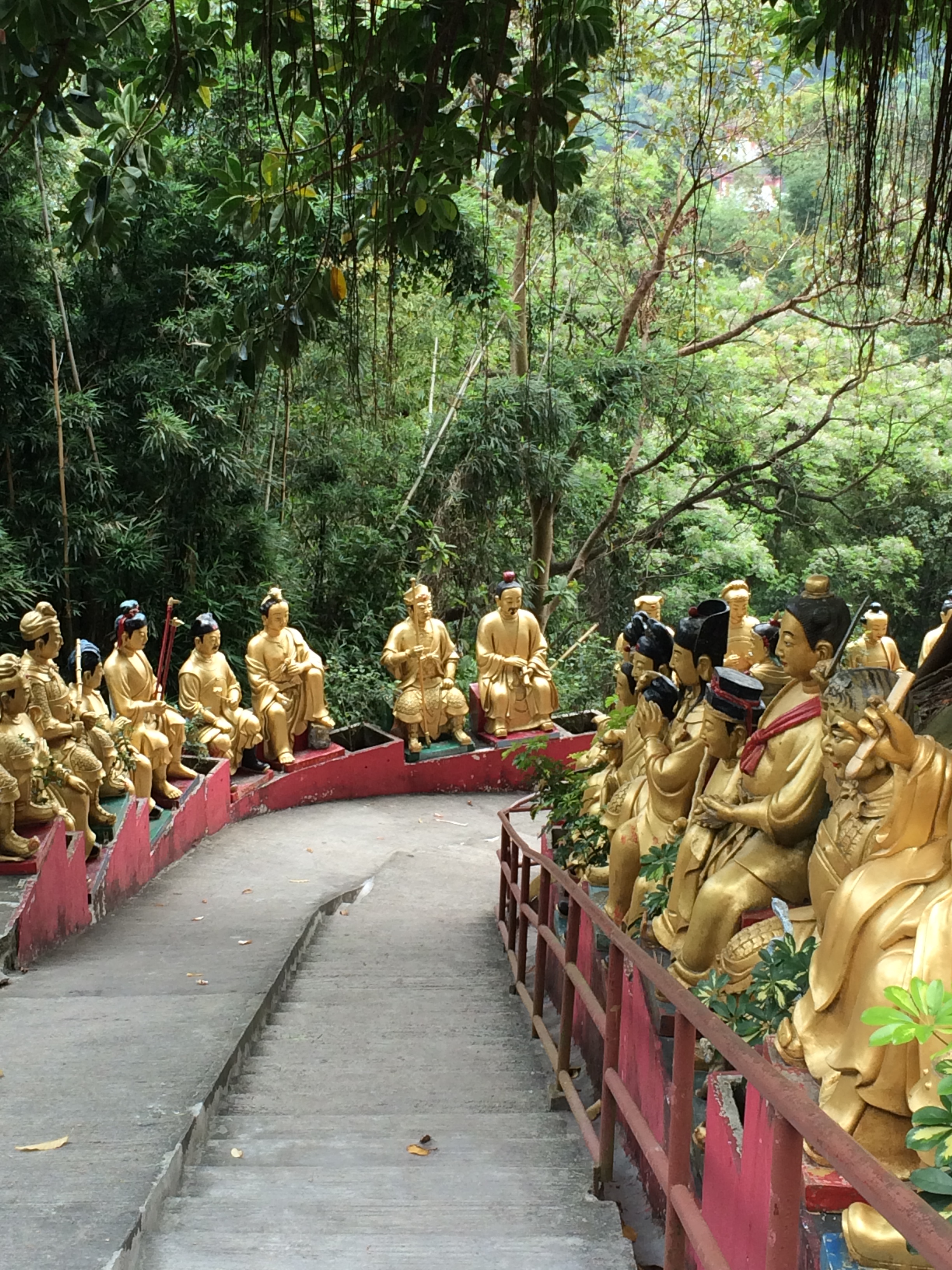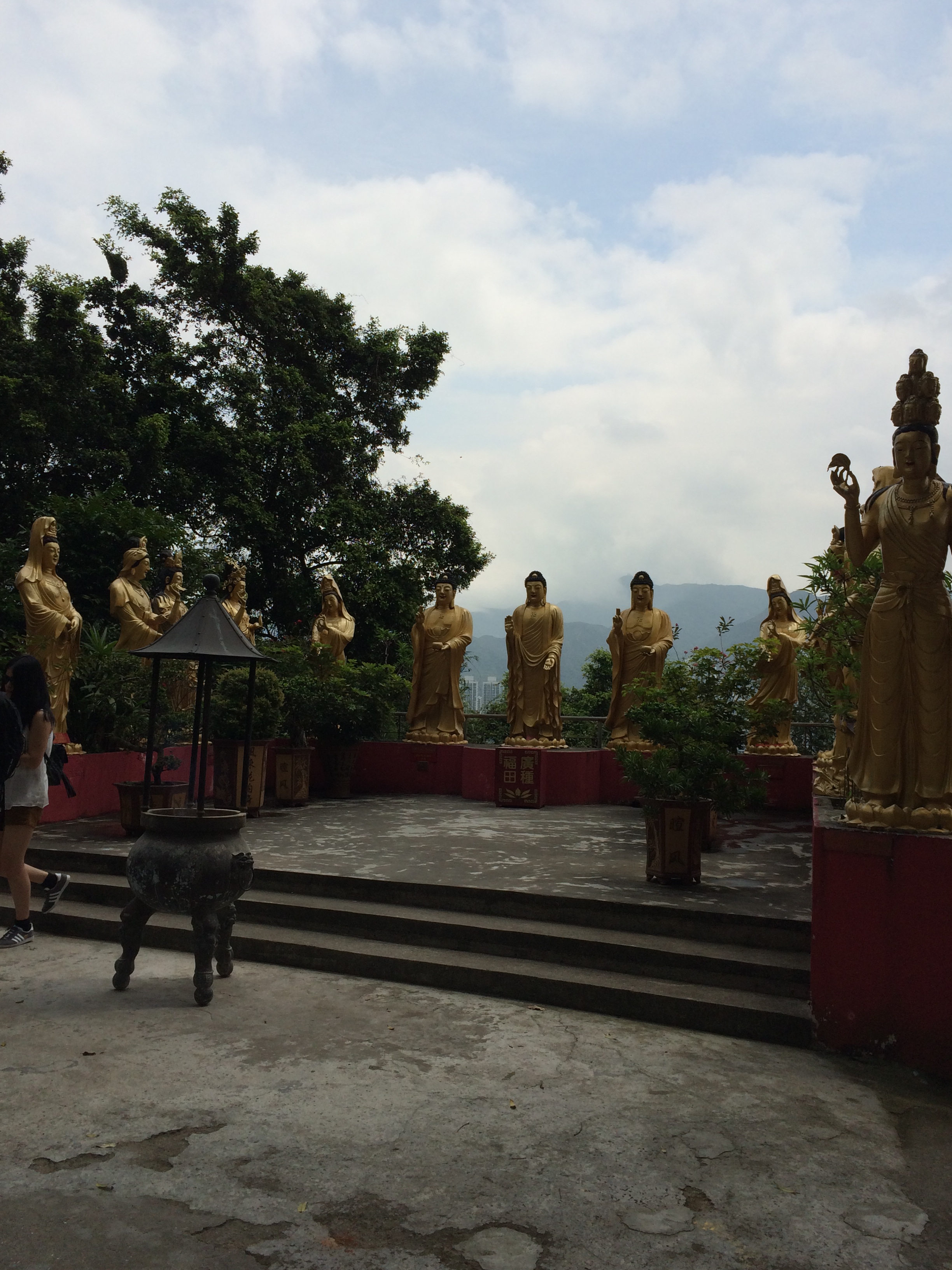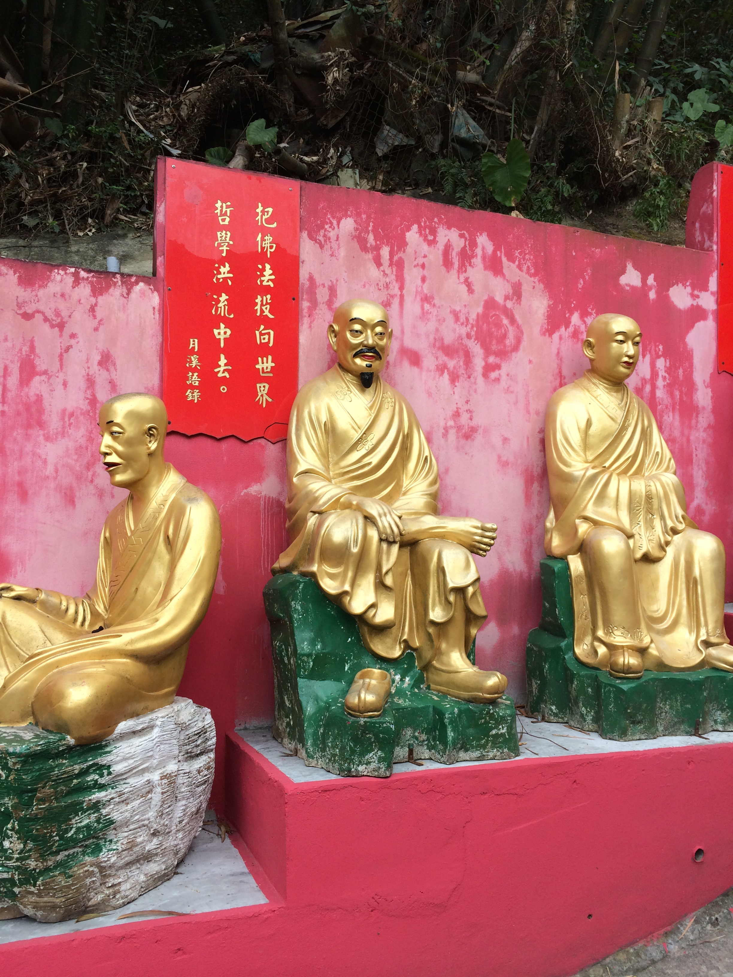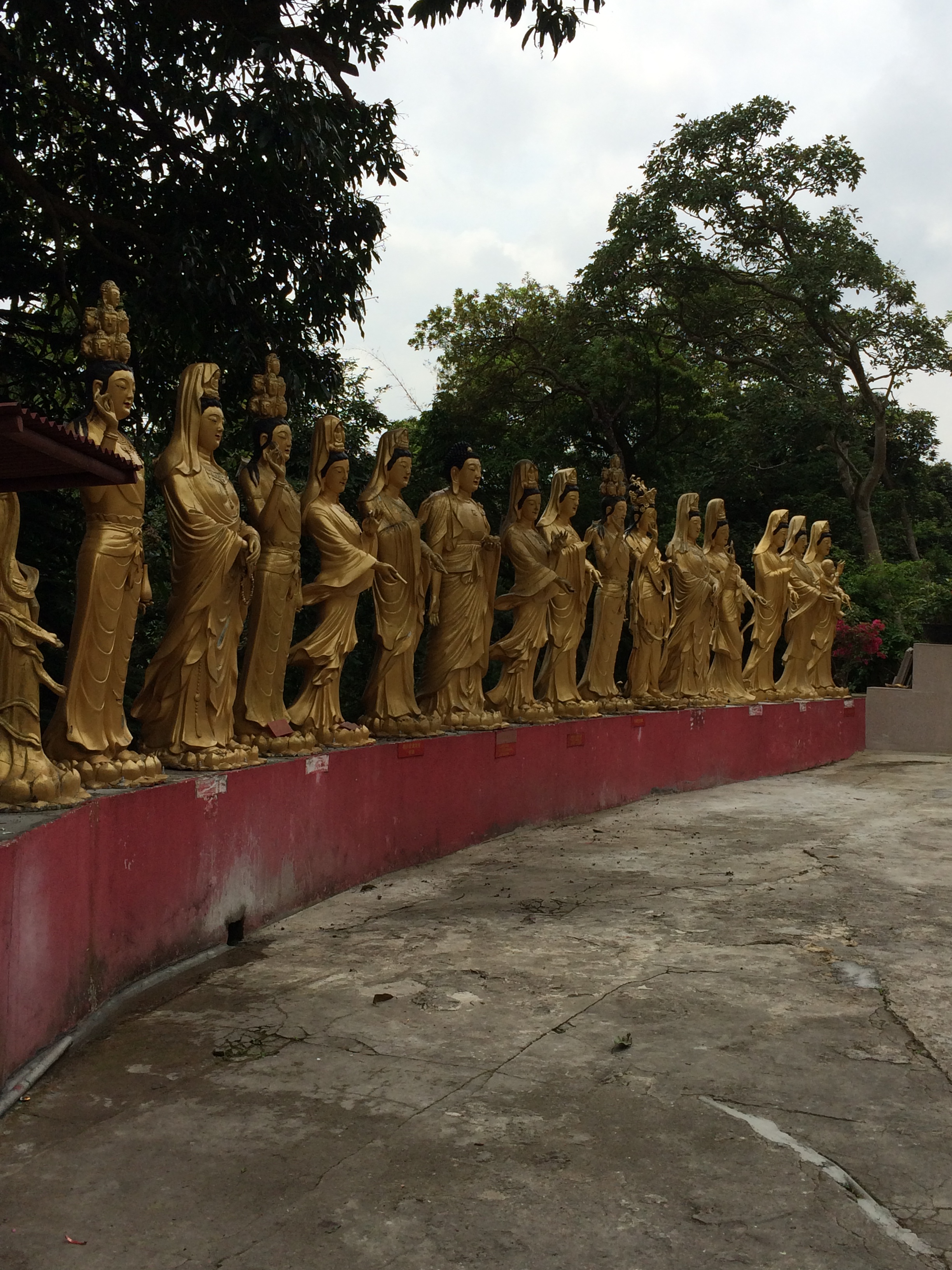 One of my choices the day before had been Ten Thousand Buddhas Monastery (Man Fat Tsz). It is kind of an out of of the way place and is not widely publicized by the tourist industry in Hong Kong because some of the structures were not considered safe by the government and so it was not encouraged that tourist signs be put up directing how to get there. Just my kind of place! When we arrived it appeared that some work was being done to rectify that situation – some of the slopes had retaining walls and signs that said they were ok by the government agency involved. The pagoda, which is advertised online as being accessible to walk up the stairs inside to the tip top was closed and being worked on.
