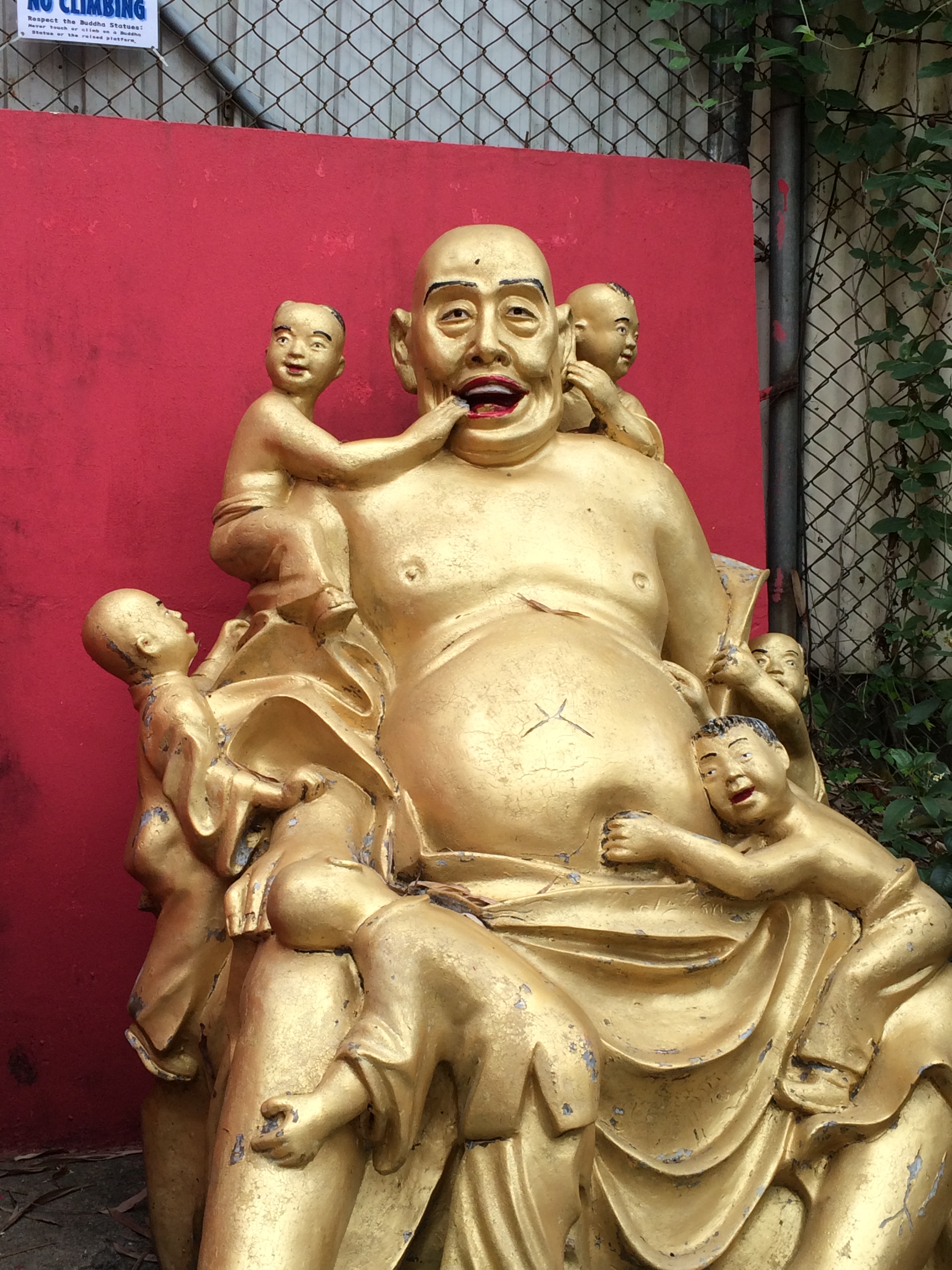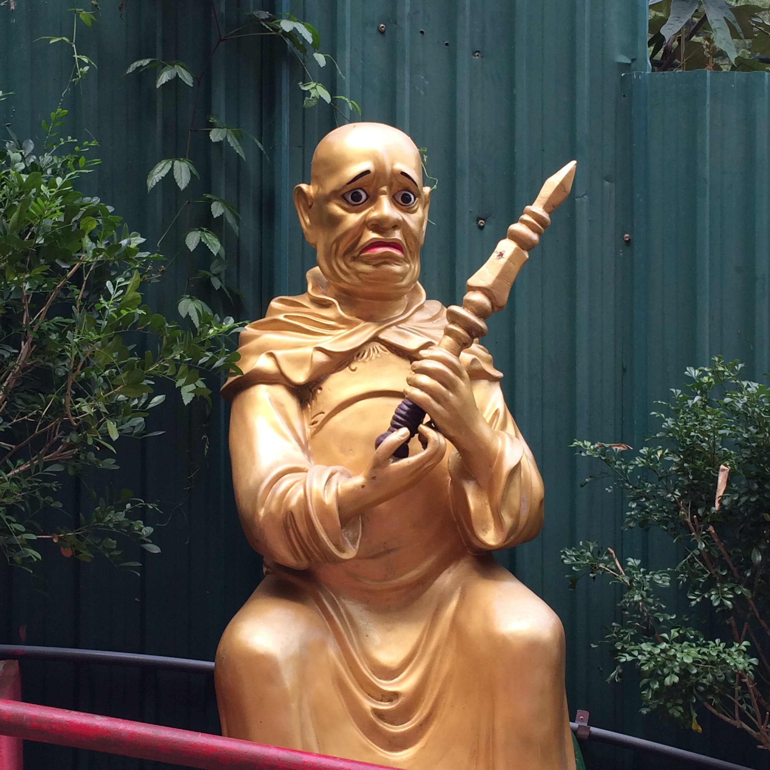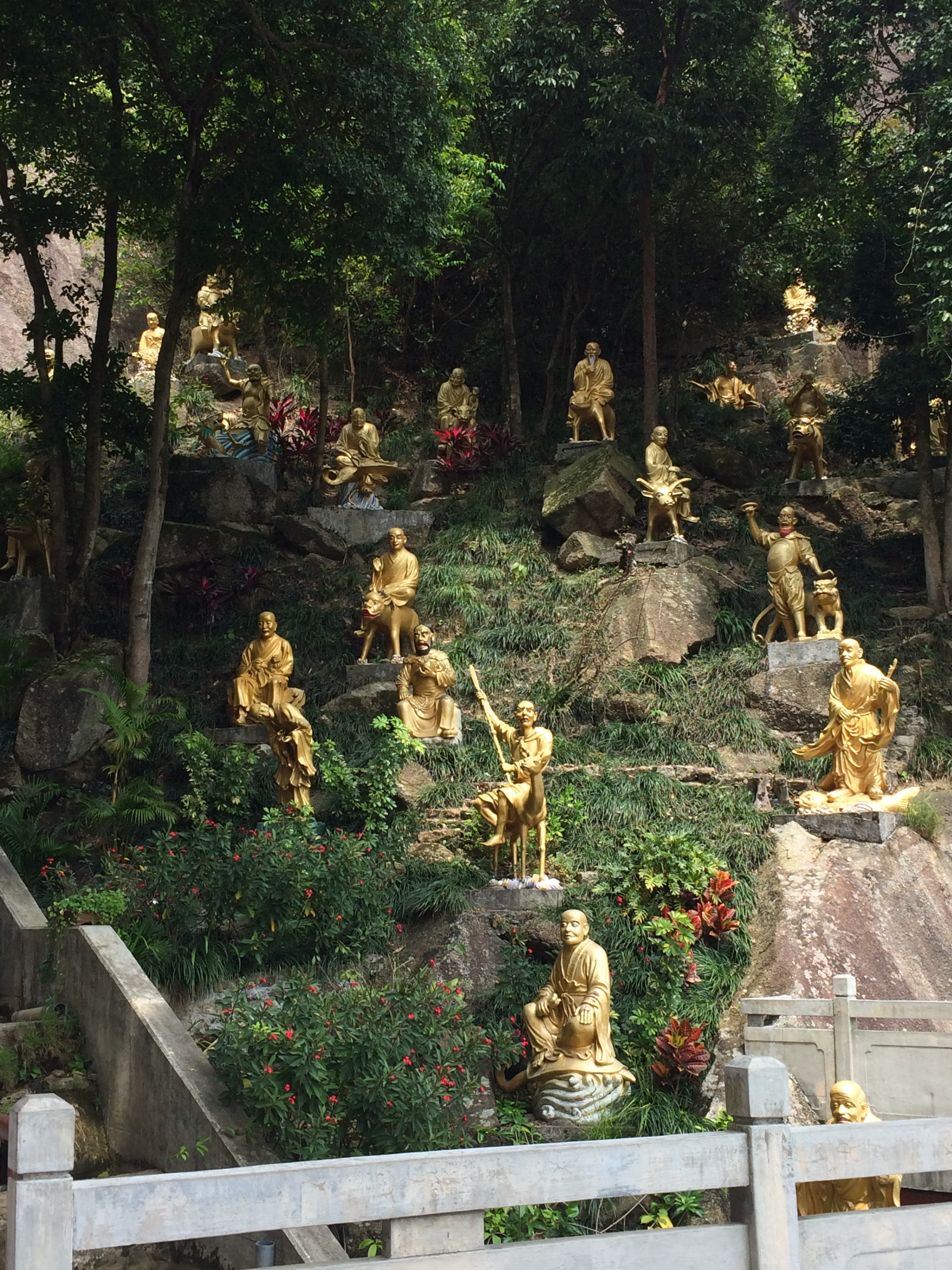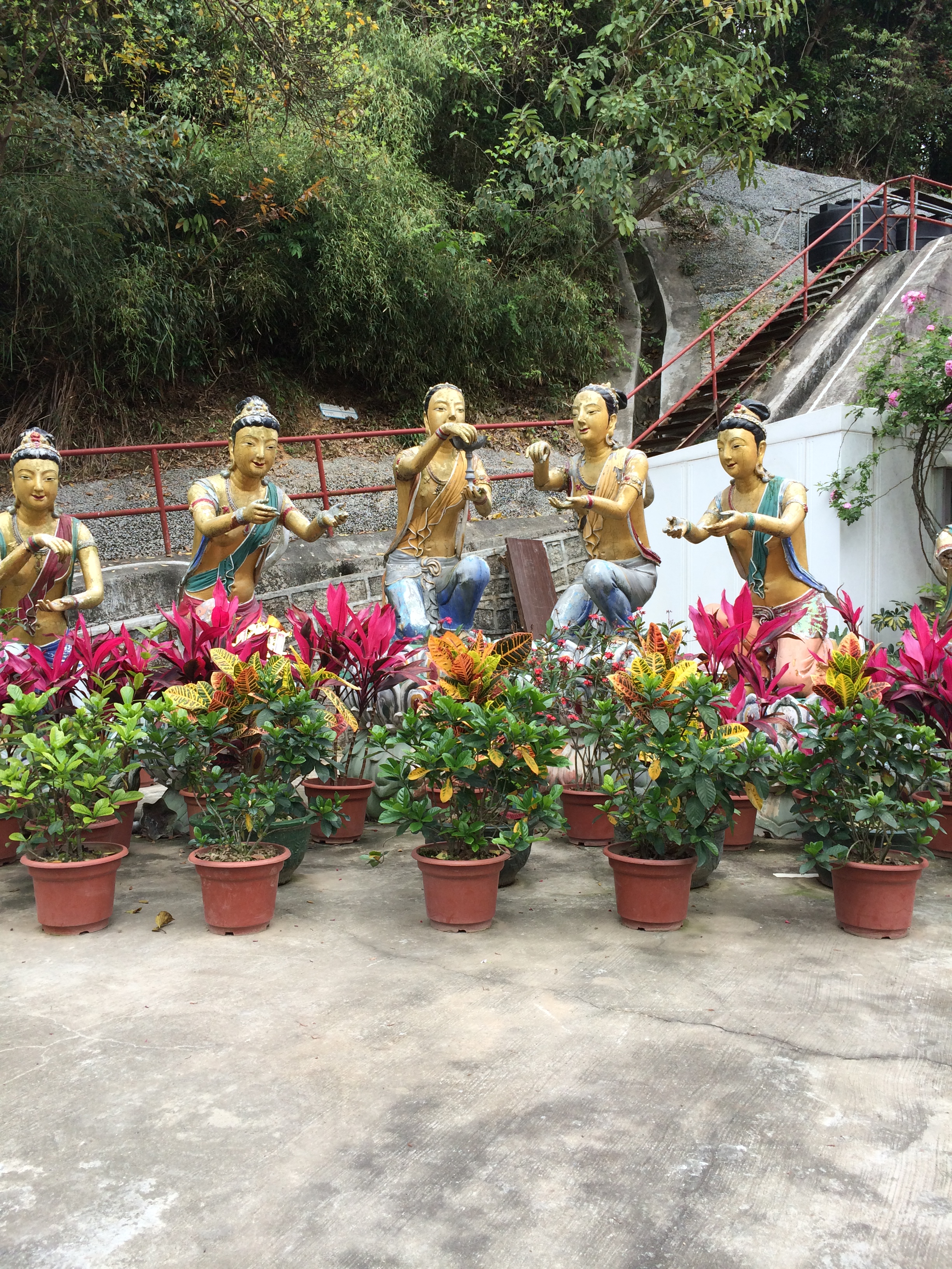 One of my choices the day before had been Ten Thousand Buddhas Monastery (Man Fat Tsz). It is kind of an out of of the way place and is not widely publicized by the tourist industry in Hong Kong because some of the structures were not considered safe by the government and so it was not encouraged that tourist signs be put up directing how to get there. Just my kind of place! When we arrived it appeared that some work was being done to rectify that situation – some of the slopes had retaining walls and signs that said they were ok by the government agency involved. The pagoda, which is advertised online as being accessible to walk up the stairs inside to the tip top was closed and being worked on.