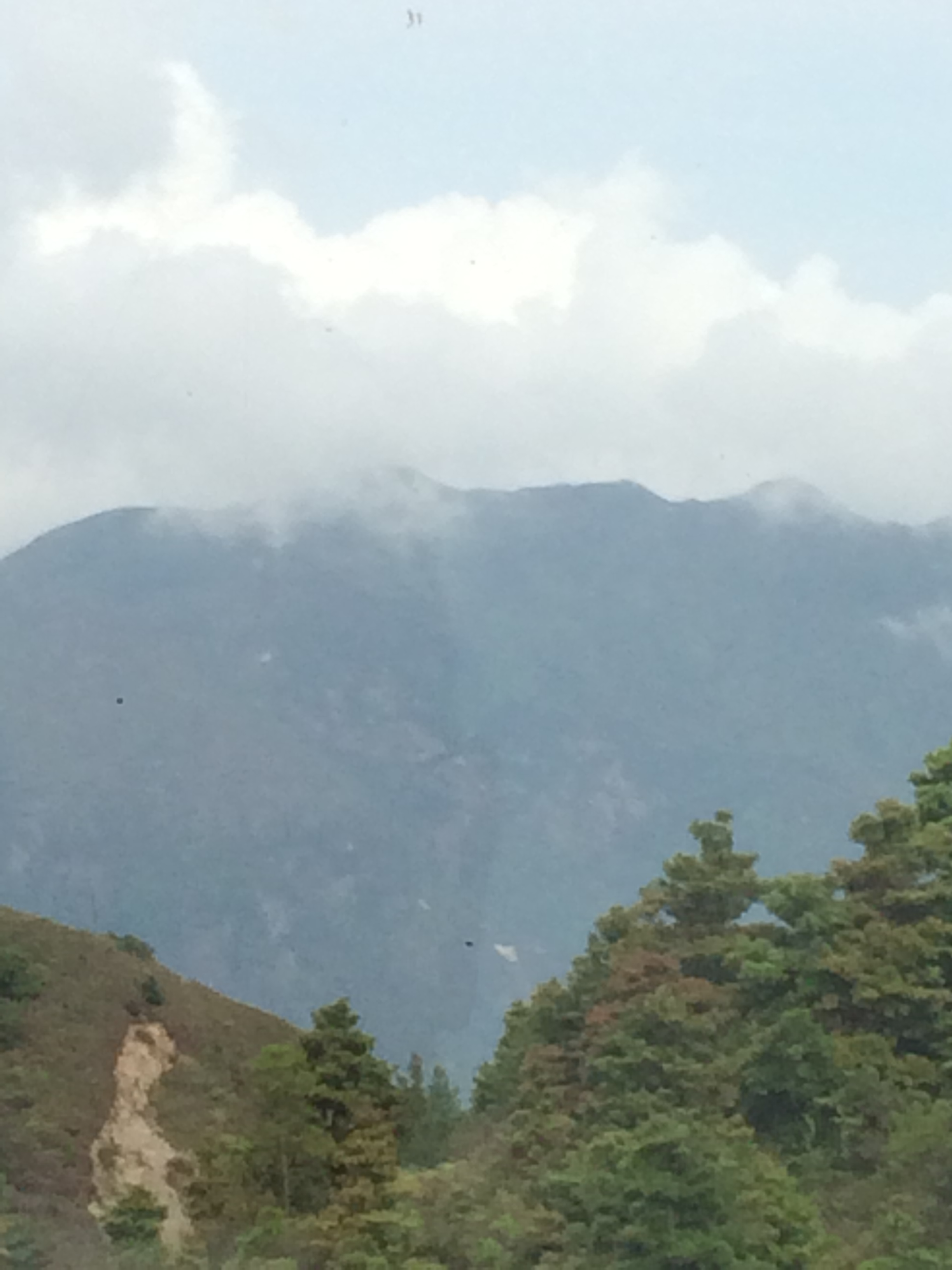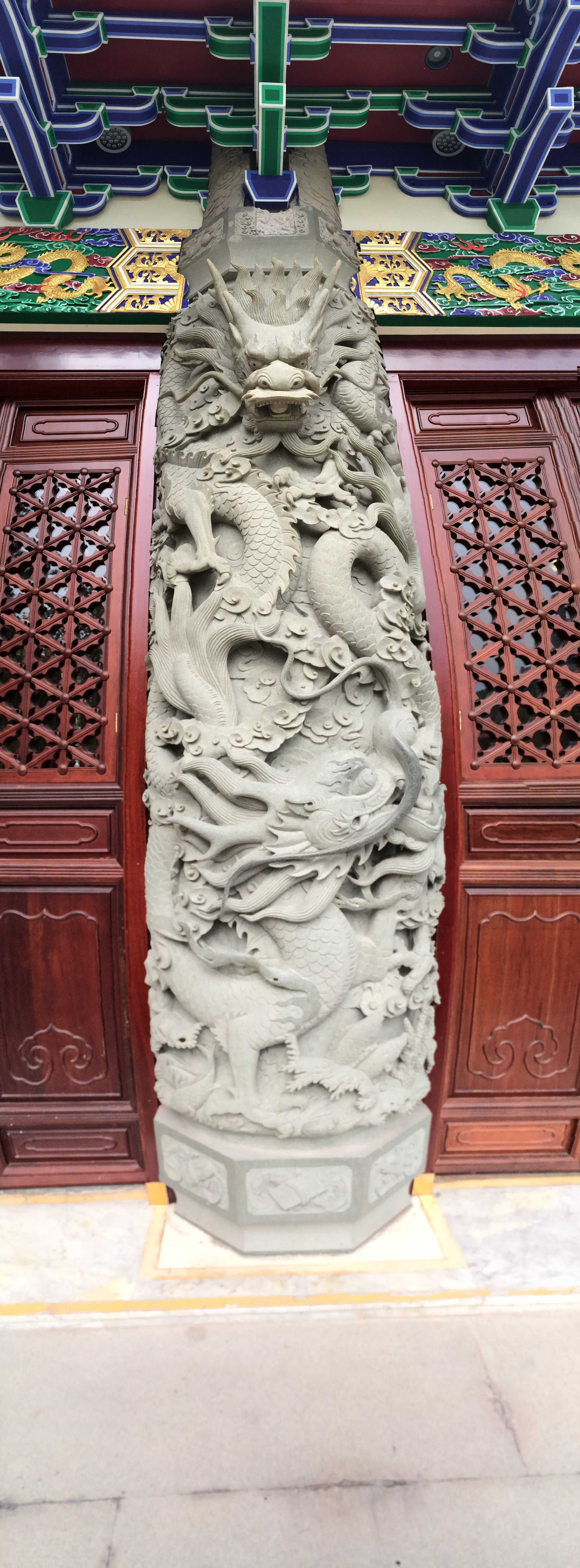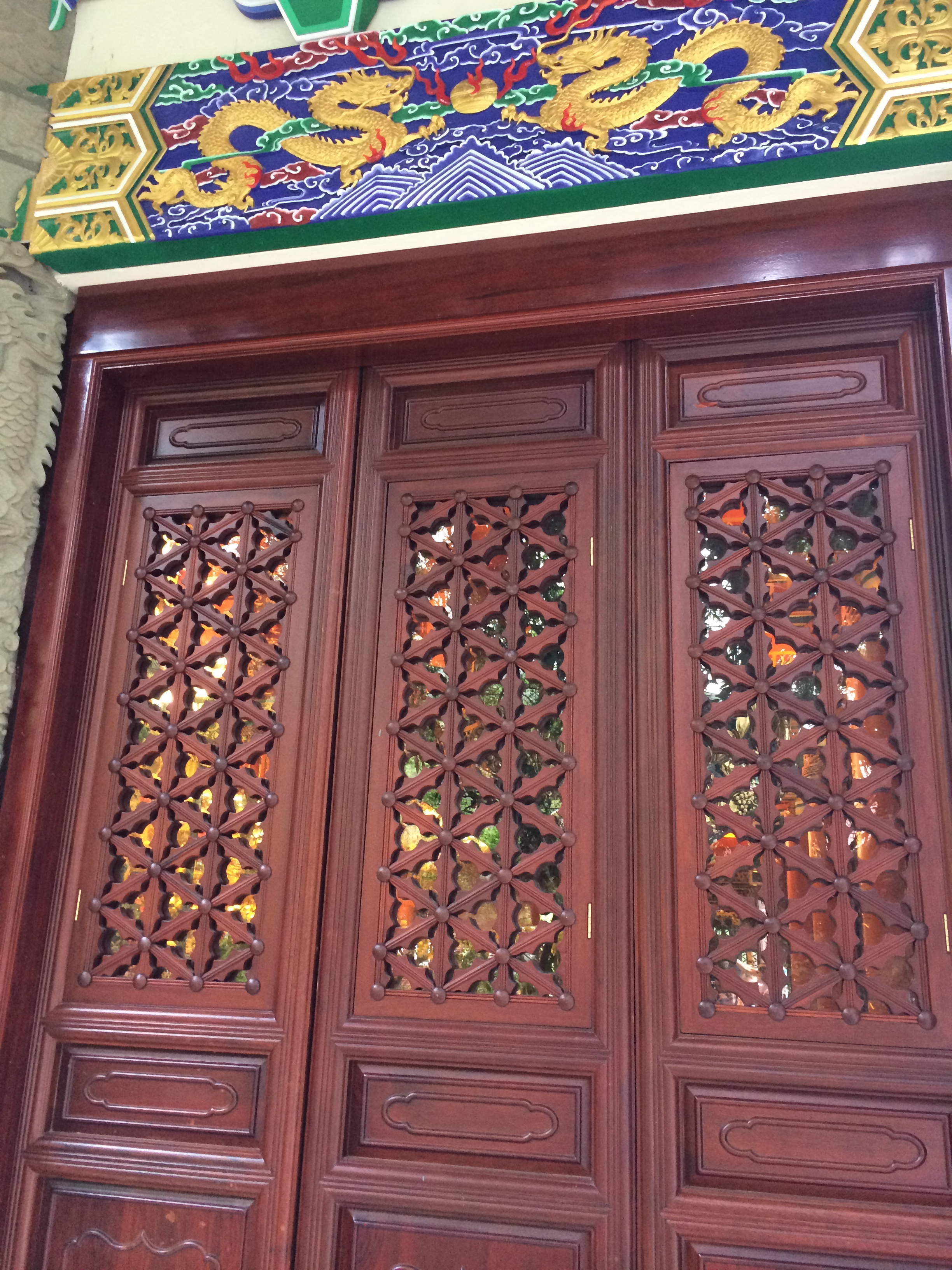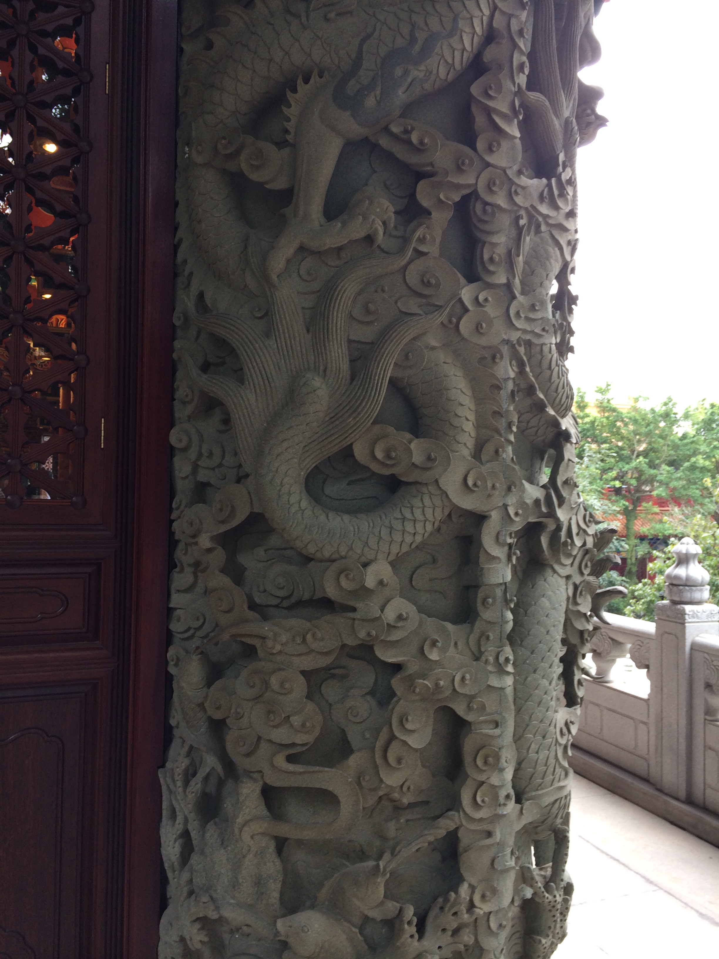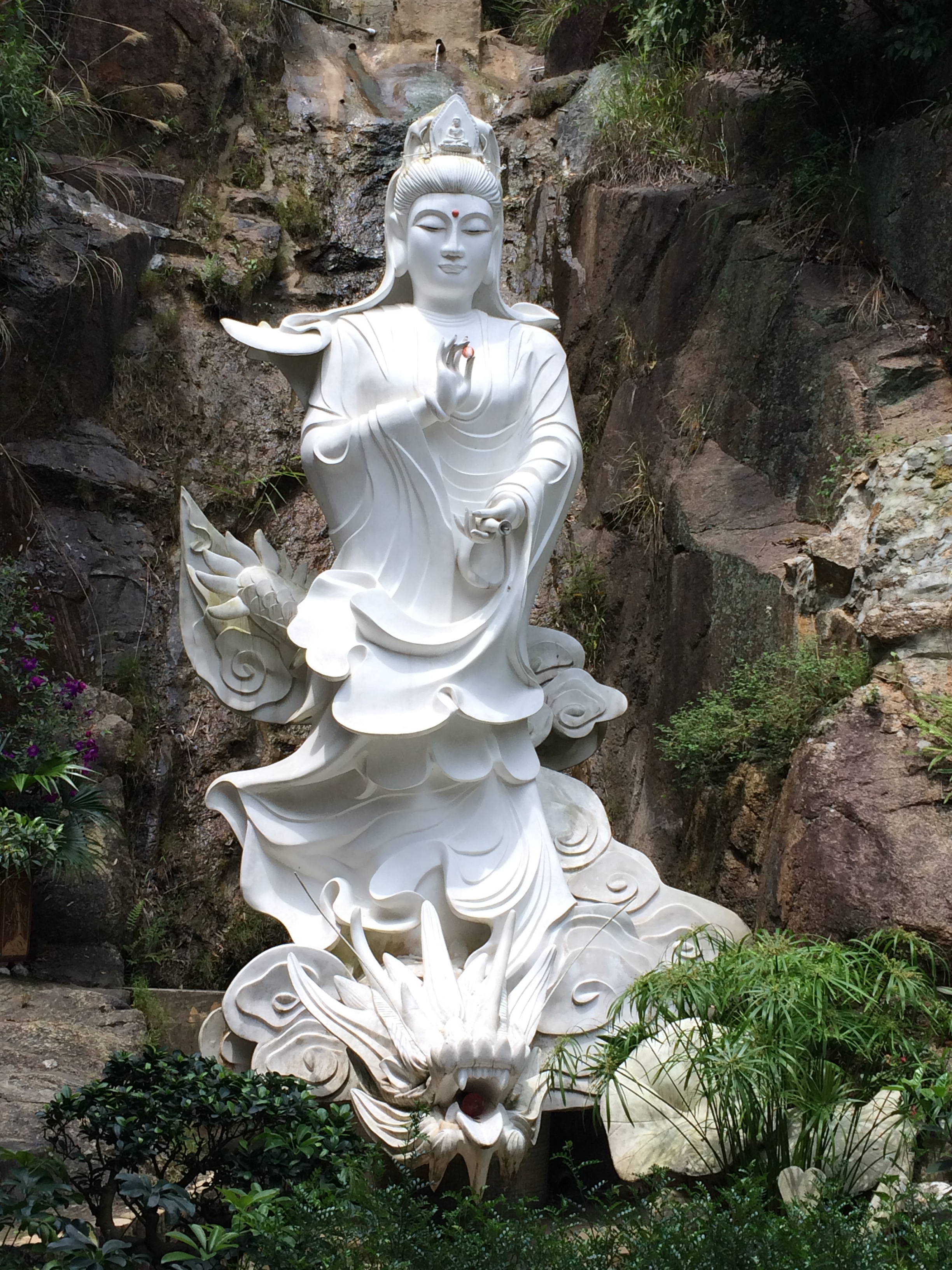 We were just finishing up, about Buddha’d out and ready to head back down the stairs when we heard from the other three that they were headed to see the Tian Tan Big Buddha at the Po Lin Monastery. We took a very long and picturesque gondola ride to get to the base, and of course are greeted by shops before you get near the entrance to the Buddha and the Monastery. I am sorry to say I was not able to walk up and down any more steps, my knees have had enough. But it was impressive – maybe next time. I did meander the grounds and took a peek inside the Monastery Temple. Services were being held and so we were not admitted entrance at all and a guard stood outside to shush the visitors hanging outside the door. I did record the sound of the monks chanting which was nice (you need to turn your sound up pretty high) (I have no idea what that shoehorn thing is sticking into photo):