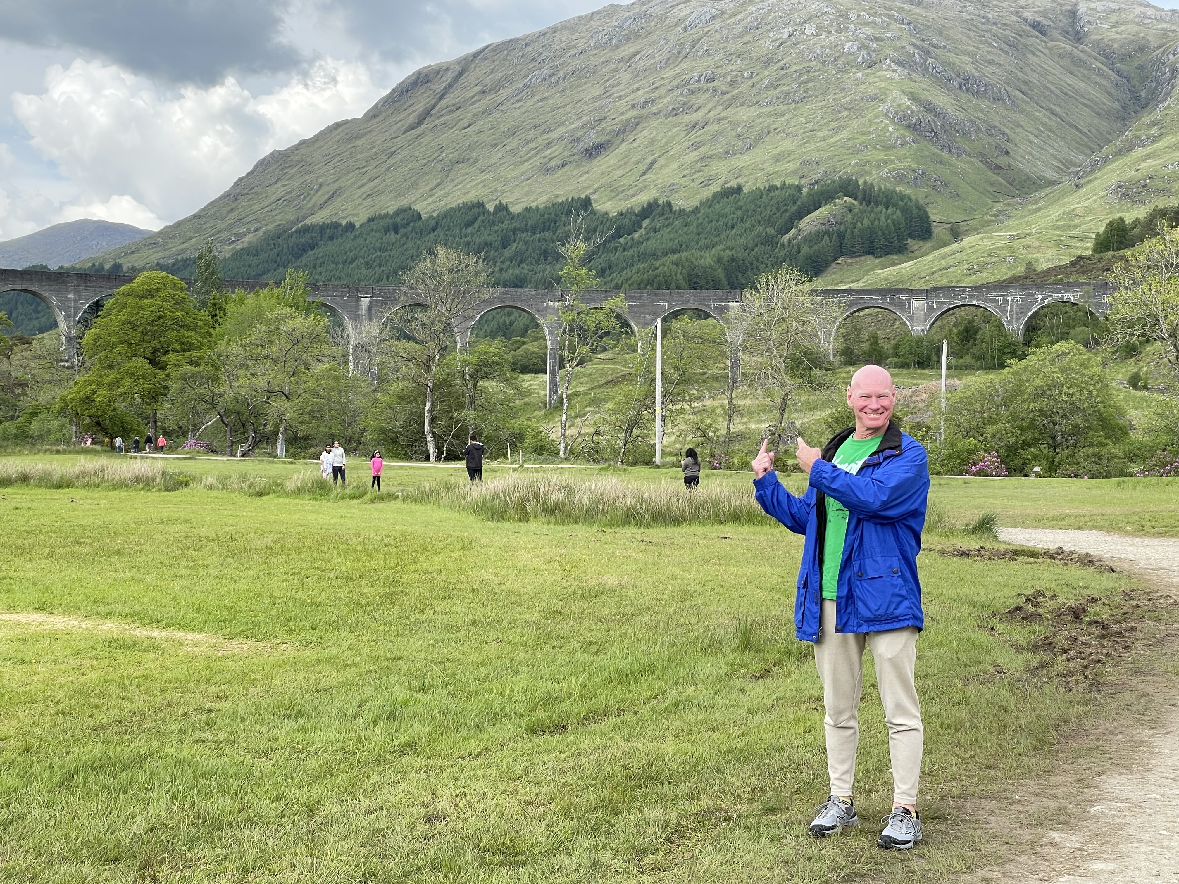 Before dinner we went out to Glenfinnan Viaduct built in 1897 and is still in use today. To people much hipper than I, it is famous for being in Harry Potter movies. Big whoop. Wikipedia says after those movies they had to warn people not to walk on the viaduct because – get this – they might get hit by a train and some people almost did. I’ve heard that the same type of yahoos also have been stealing stones from Culloden after it was made famous in the Outlander series as the scene of the squashing of the Jacobites by the British. Good lord… I think we will go past it but Al has another castle or something planned around Inverness. Anyway, I know the outcome at Culloden, I’ve watched some of it but it’s world history so I tend to switch back to Mrs. Maisel after a while.