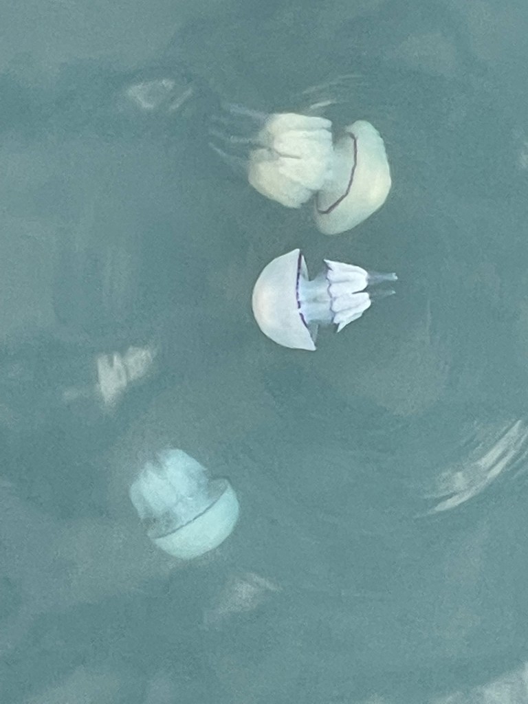 When we arrived in our cabin I looked out over the balcony to see puffy little white clouds in the water. What IS that? Wait. Those are JELLYFISH. Lots and lots of jellyfish. Lots and lots of BIG jellyfish. Rhizostoma pulmo to be exact, largest jellies in the Mediterranean. Turns out this is actually the end of what was an invasion of the jellyfish in Trieste back in April. Local news reports had photos of them piled up on the beach like someone had gotten a little carried away with a bubble bath. They were so beautiful and mesmerizing, we had a hard time pulling ourselves away from the scene. This could be the video that makes me pay up so I can show you on WordPress. Amazing and totally unexpected of course.