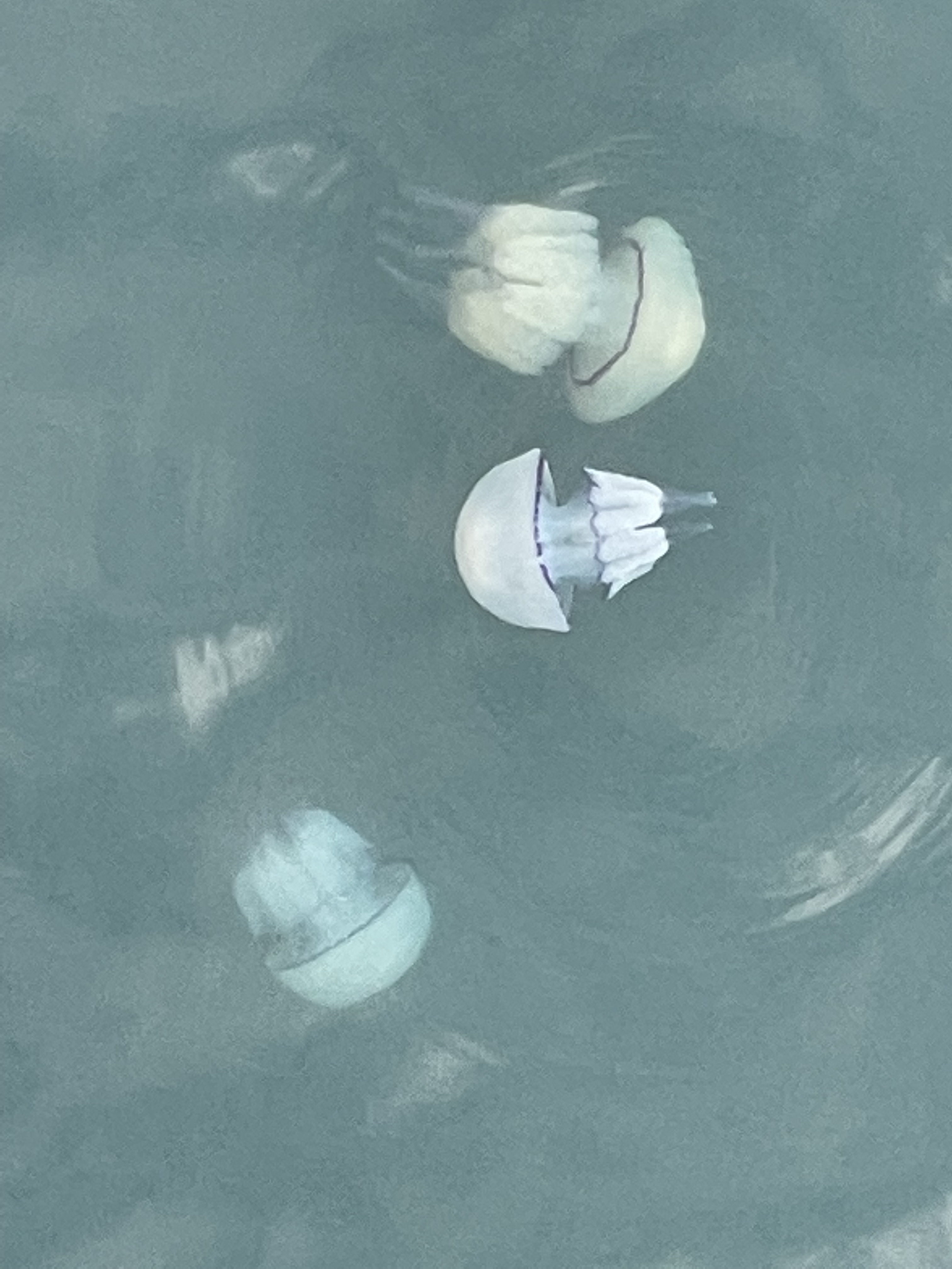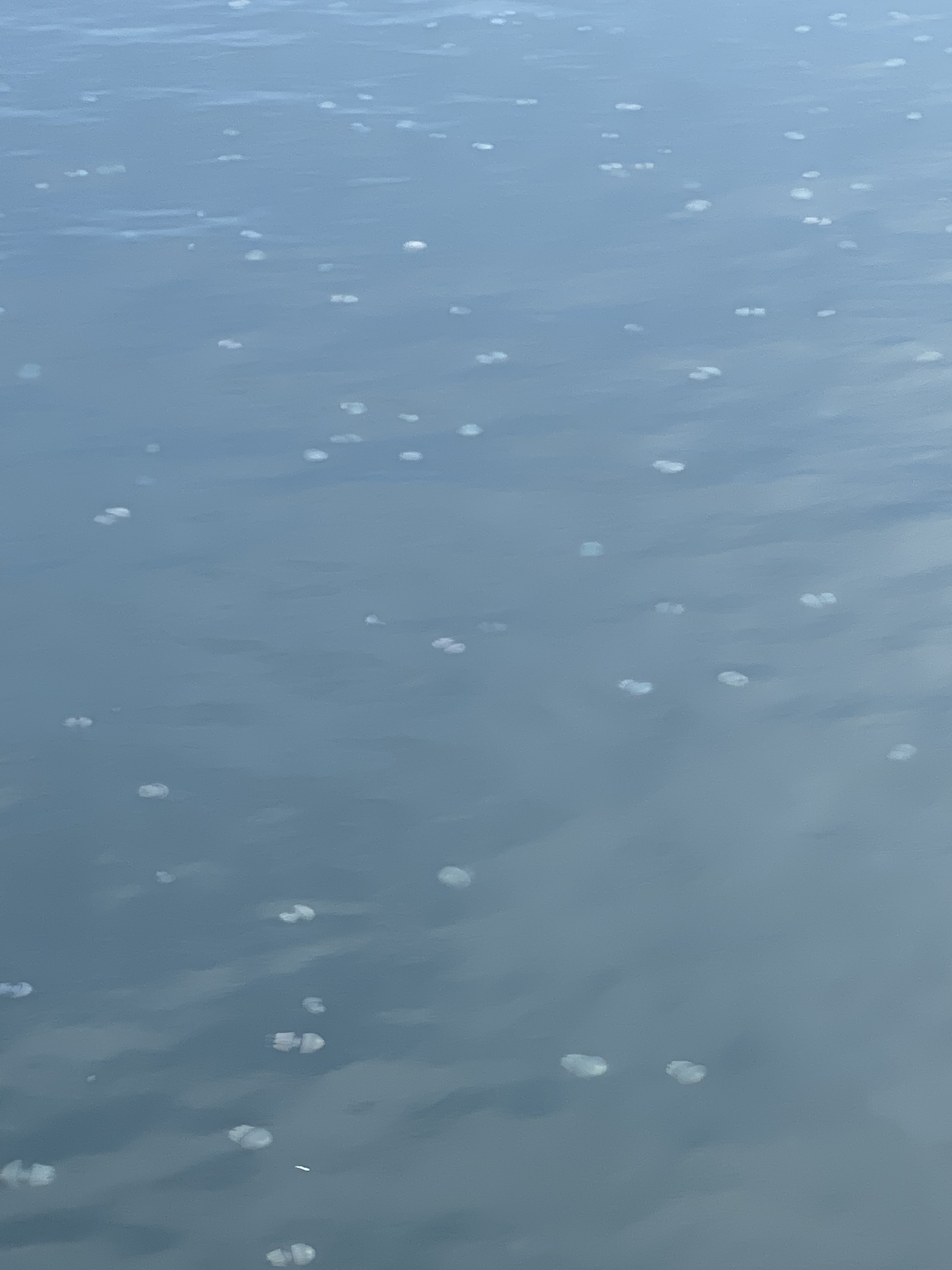 When we arrived in our cabin I looked out over the balcony to see puffy little white clouds in the water. What IS that? Wait. Those are JELLYFISH. Lots and lots of jellyfish. Lots and lots of BIG jellyfish. Rhizostoma pulmo to be exact, largest jellies in the Mediterranean. Turns out this is actually the end of what was an invasion of the jellyfish in Trieste back in April. Local news reports had photos of them piled up on the beach like someone had gotten a little carried away with a bubble bath. They were so beautiful and mesmerizing, we had a hard time pulling ourselves away from the scene. This could be the video that makes me pay up so I can show you on WordPress. Amazing and totally unexpected of course.