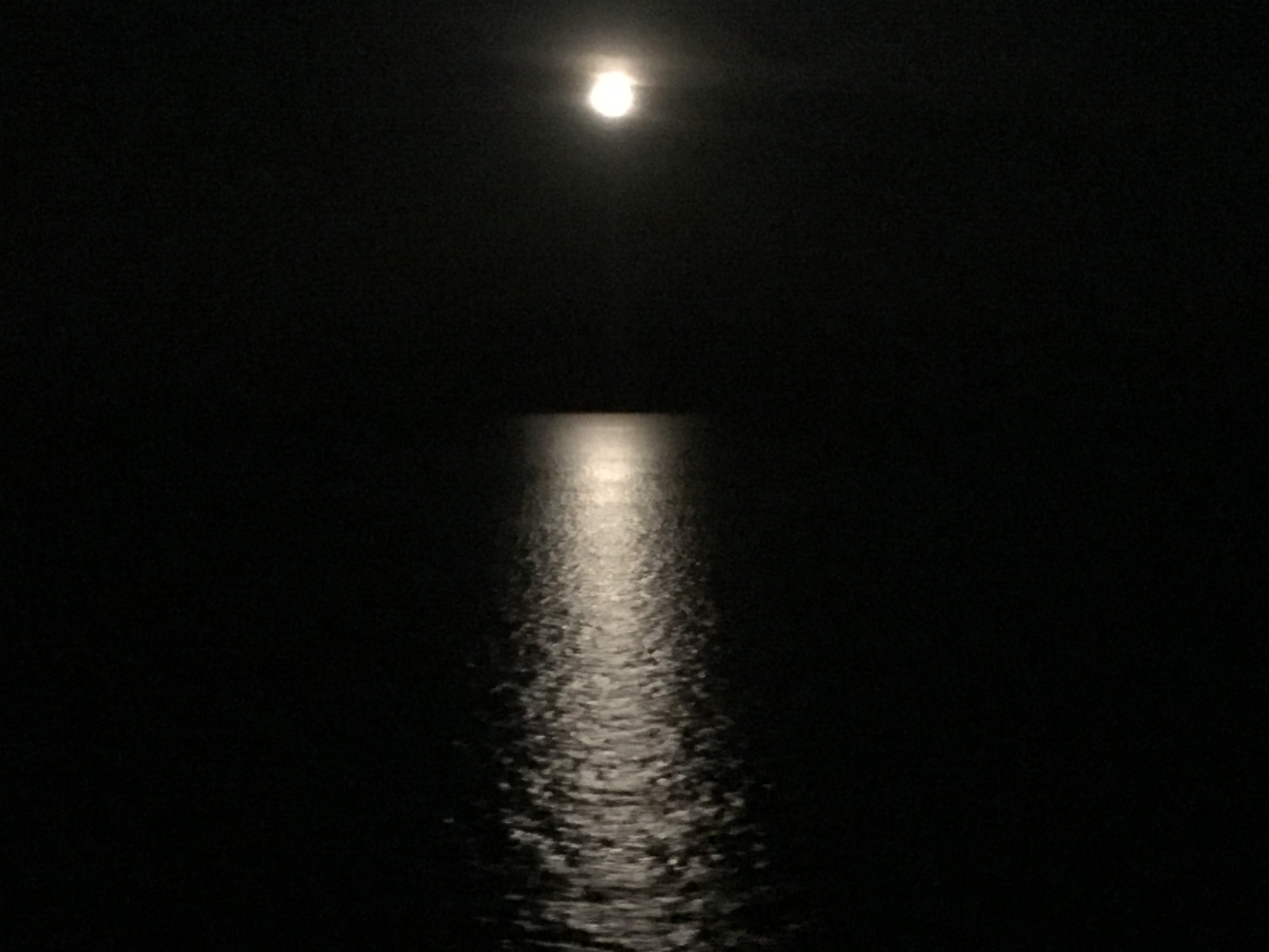 But before I sign off, I must tell you that in the middle of the night I woke up to the full moon shining in my window, a glistening pathway on the Mediterranean beckoning me to the black horizon. My little iPhone camera did the best it could. Make sure you look at the video after the photos.