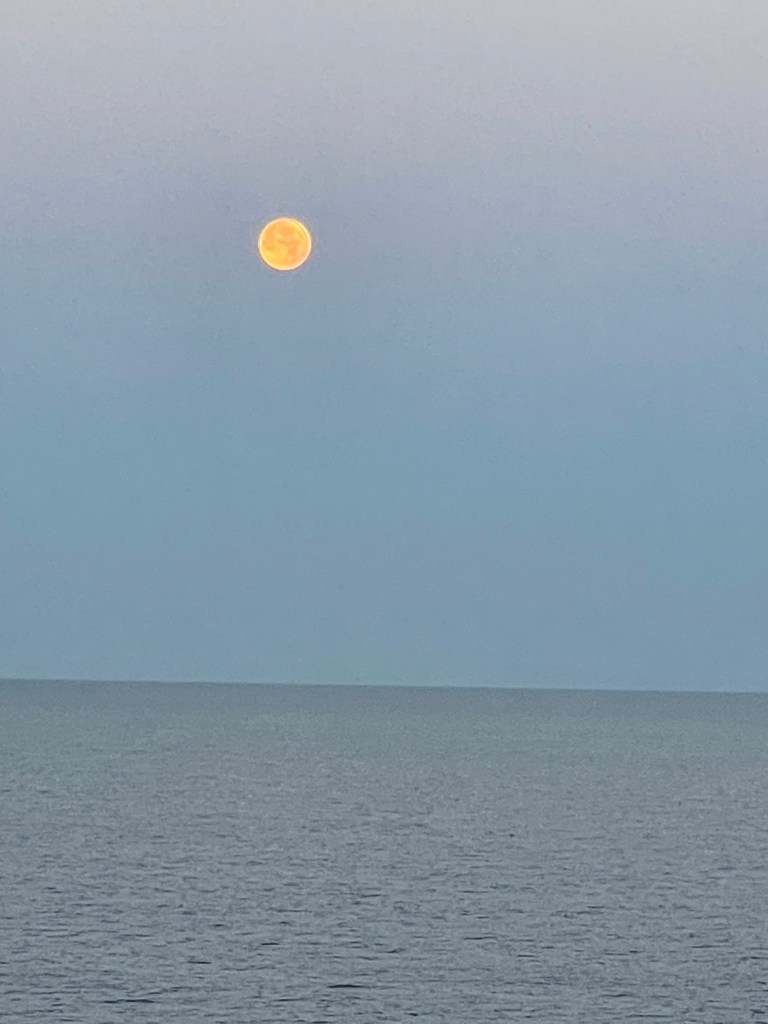 Woke up to the strawberry moon just cleaning up its desk and getting ready to head home for the day. It was 6 a.m. and I wasn’t sure if it was a hazy sun or the moon. Once I was up, I was up and we were sailing into Katakolon, a port on the western side of Greece for a short day. There were lots of personal sailboats moored and it reminded me of my friend Tina M. who is second generation Greek (She may correct me on that. She might even be first). When Tina retired she learned to sail in SF Bay and I know she has been here sailing the Greek Isles. Take me, Tina!