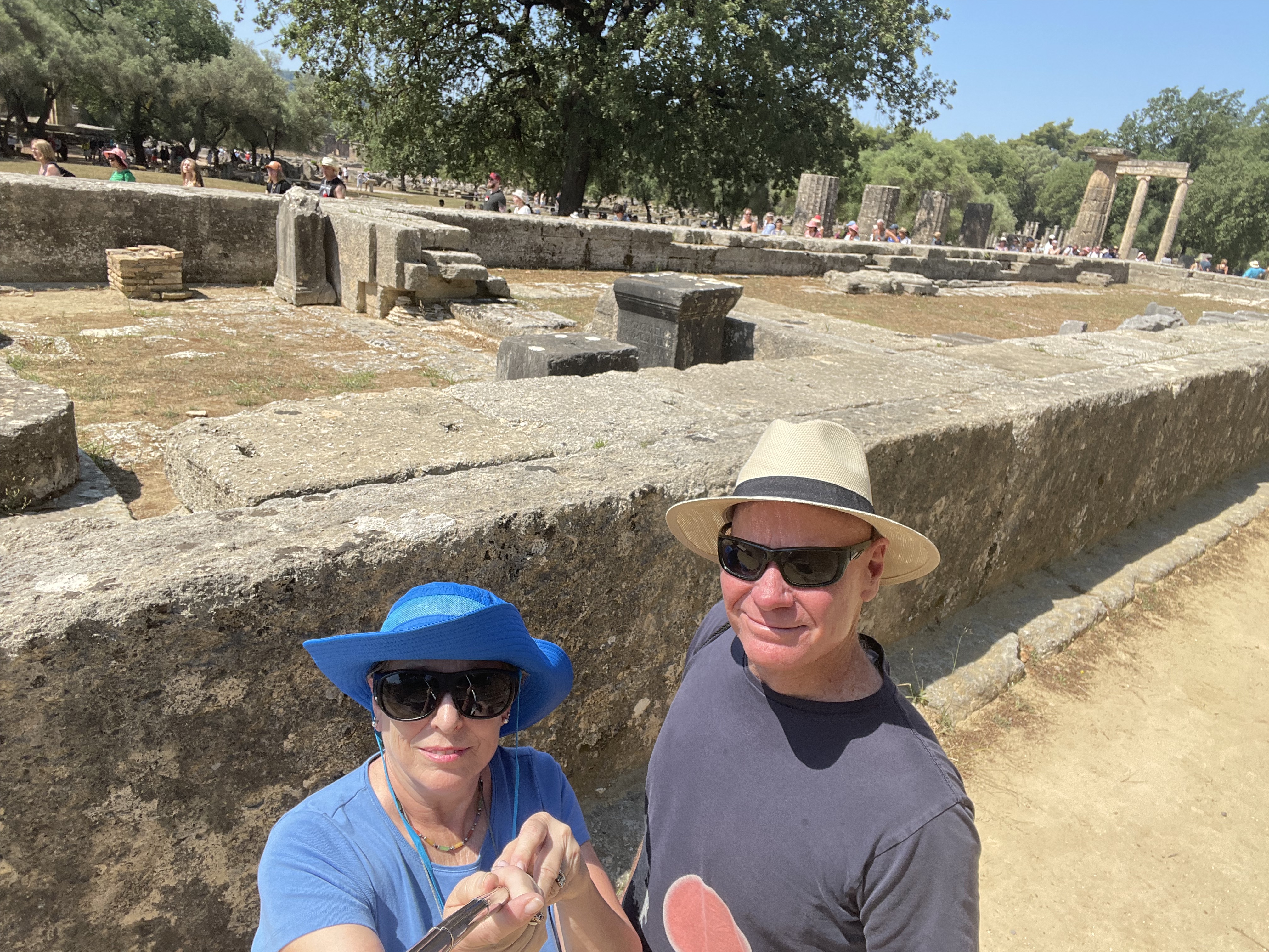 We didn’t stick around in the little town but introduced ourselves to a couple at port who looked a little disoriented. Exactly who we were looking for! Many people had scheduled tours but we just wanted to go Olympia and the taxi ride is about 45 minutes and expensive. I asked if they were by chance going to Olympia. They said they’d like to but weren’t sure how to do it. Have I got a deal for you! We split the cab ride then with Don and Lee from Rhode Island, thoroughly enjoyed their company and conversation as we walked around the archaeological site, had lunch, more on that later.