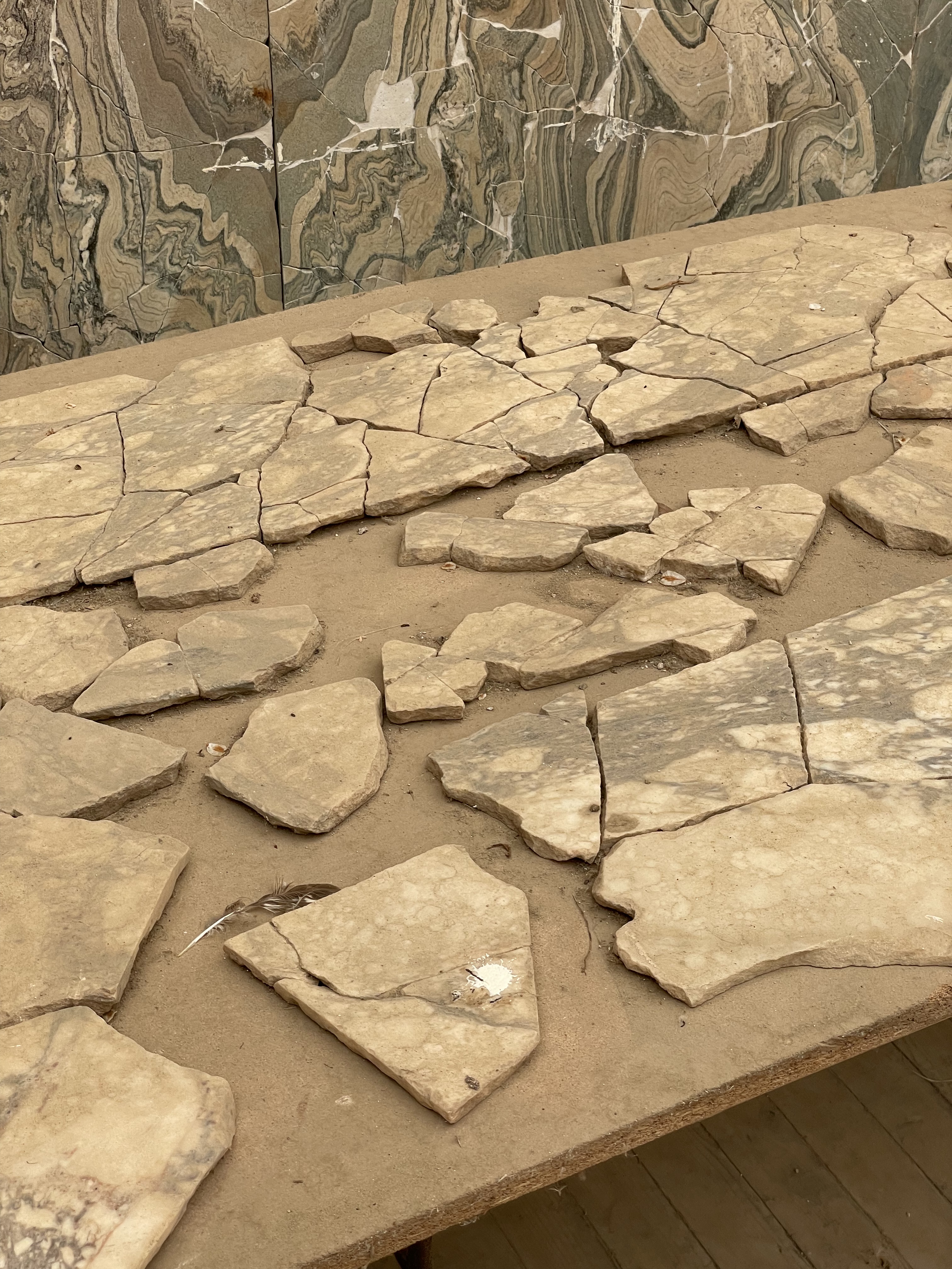 One photo below shows how the marble was sliced to be able to mirror it on the walls. Not really sure how they were able to get it so thin with tools available at the time.