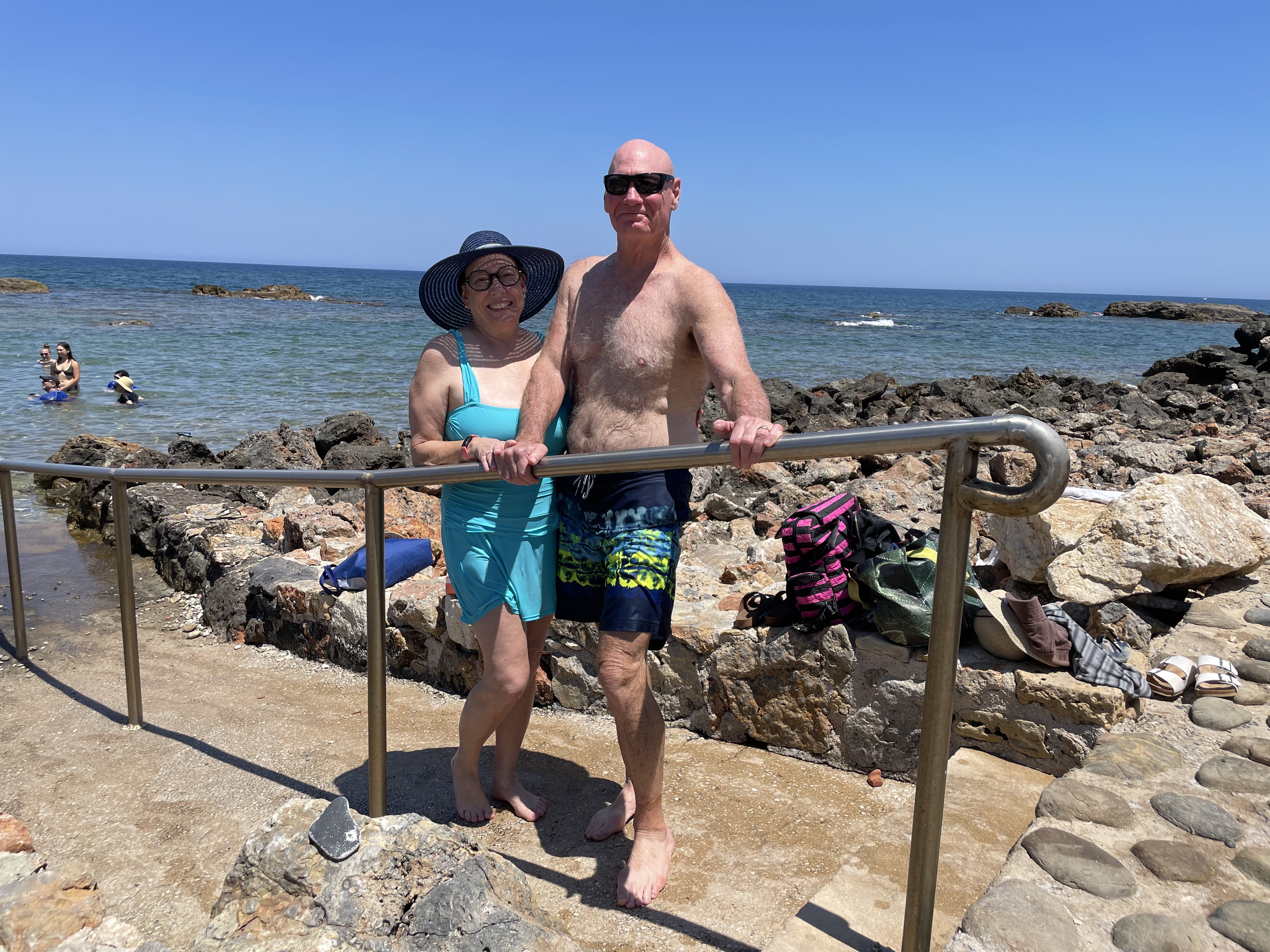 That swim was the best ever. The water is crystal clear. It was rocky and somewhat treacherous to get in but once you realized you just needed to sit down and move out that way – well, we sat for a good 45 minutes. Beyond refreshing and good conversation with our nurse. It was hard to get out for sure. We didn’t have towels and my swimsuit kept me cool for the rest of our walk.