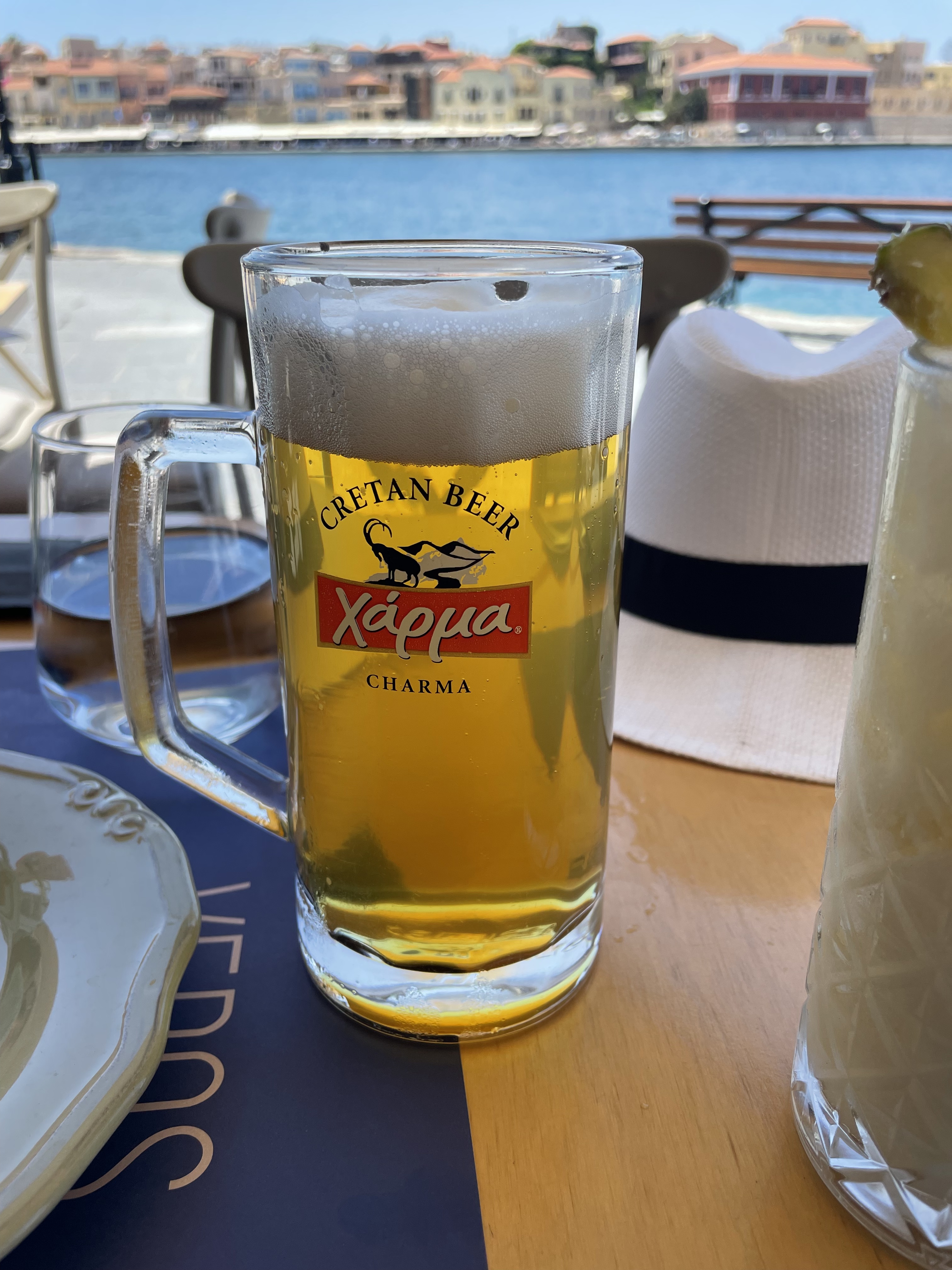 We ended up at cafe Veros, one of the many cafe’s lining the water. Ordered myself a virgin Pina colada, Al had a local beer and we shared a greek pizza. It was a sublime day without having to learn anything.