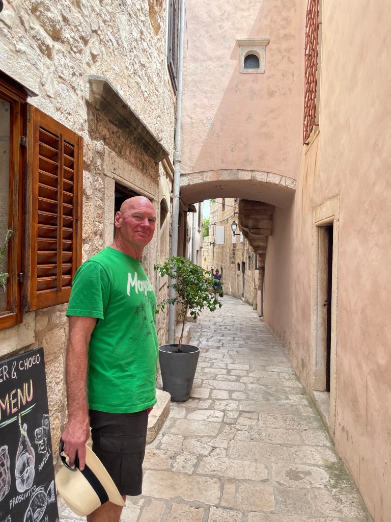 What a question. Of course I want ice cream. So I dumped my stuff in the cabin and got on the tender. By this time a lovely breeze had come up over Korcula. It is a picturesque little town and I look forward to returning next week. We did tromp around a bit and I did get warm so I’m glad I didn’t go in the morning for that reason as well as the new acquaintances I met.