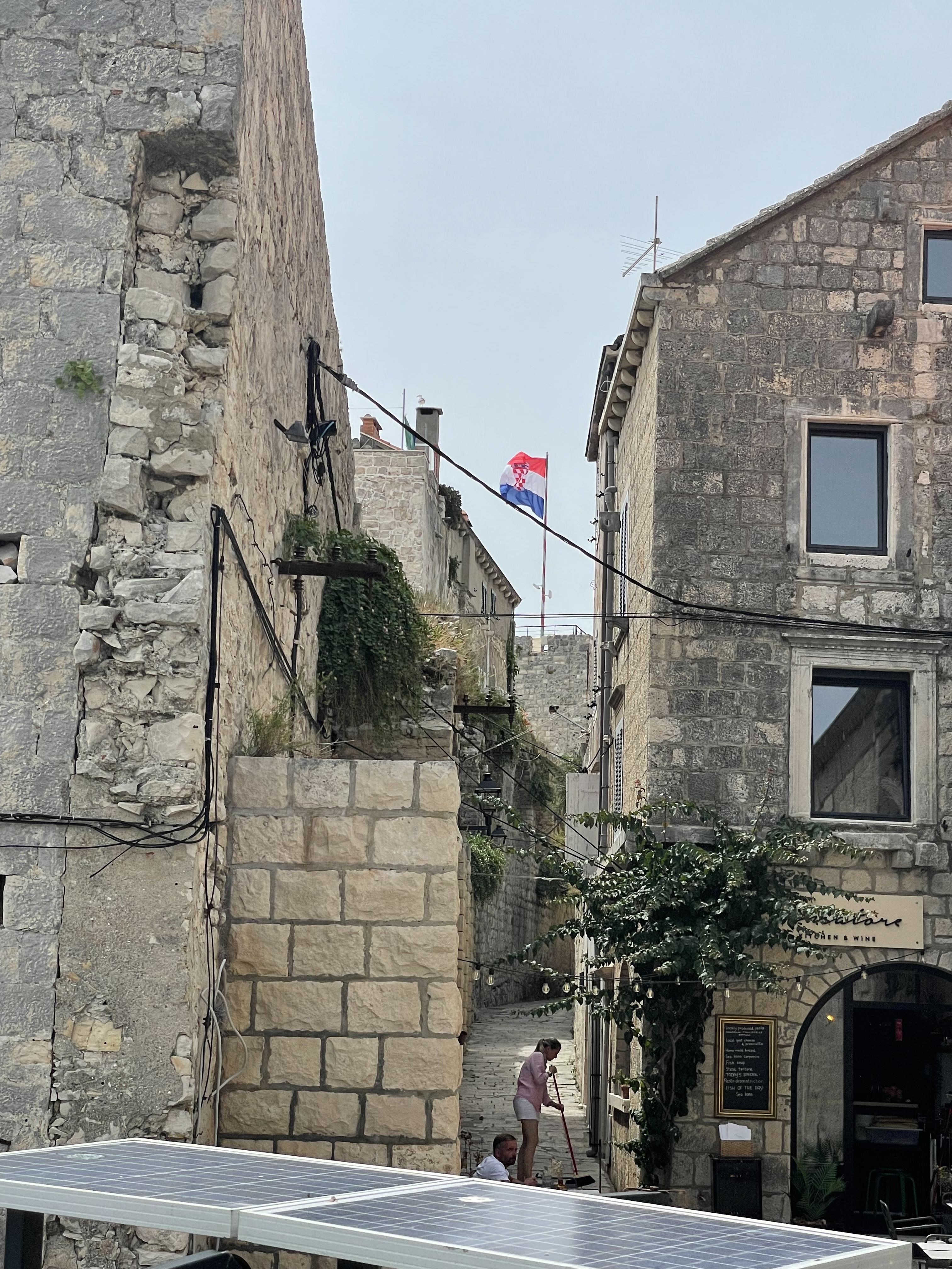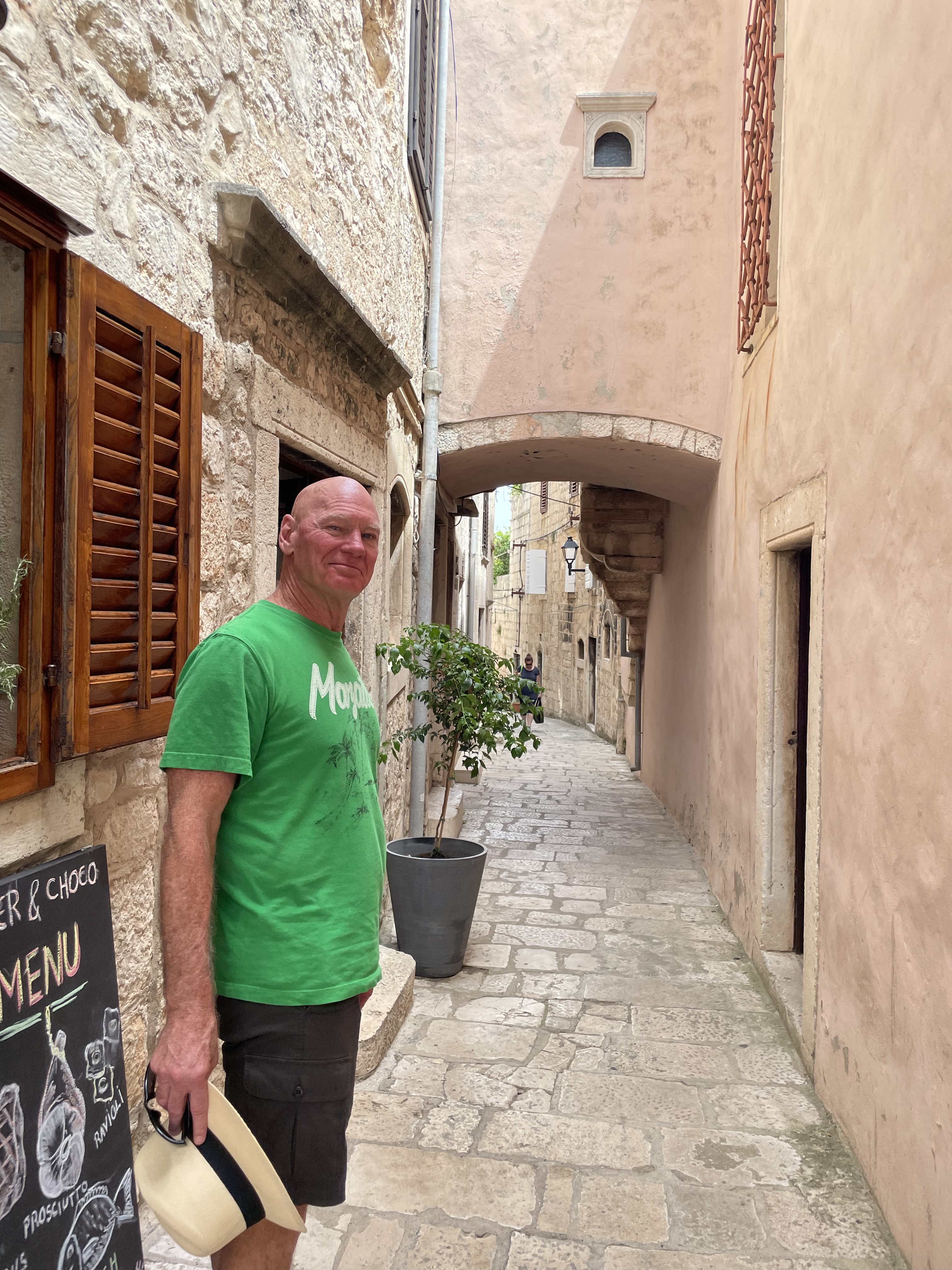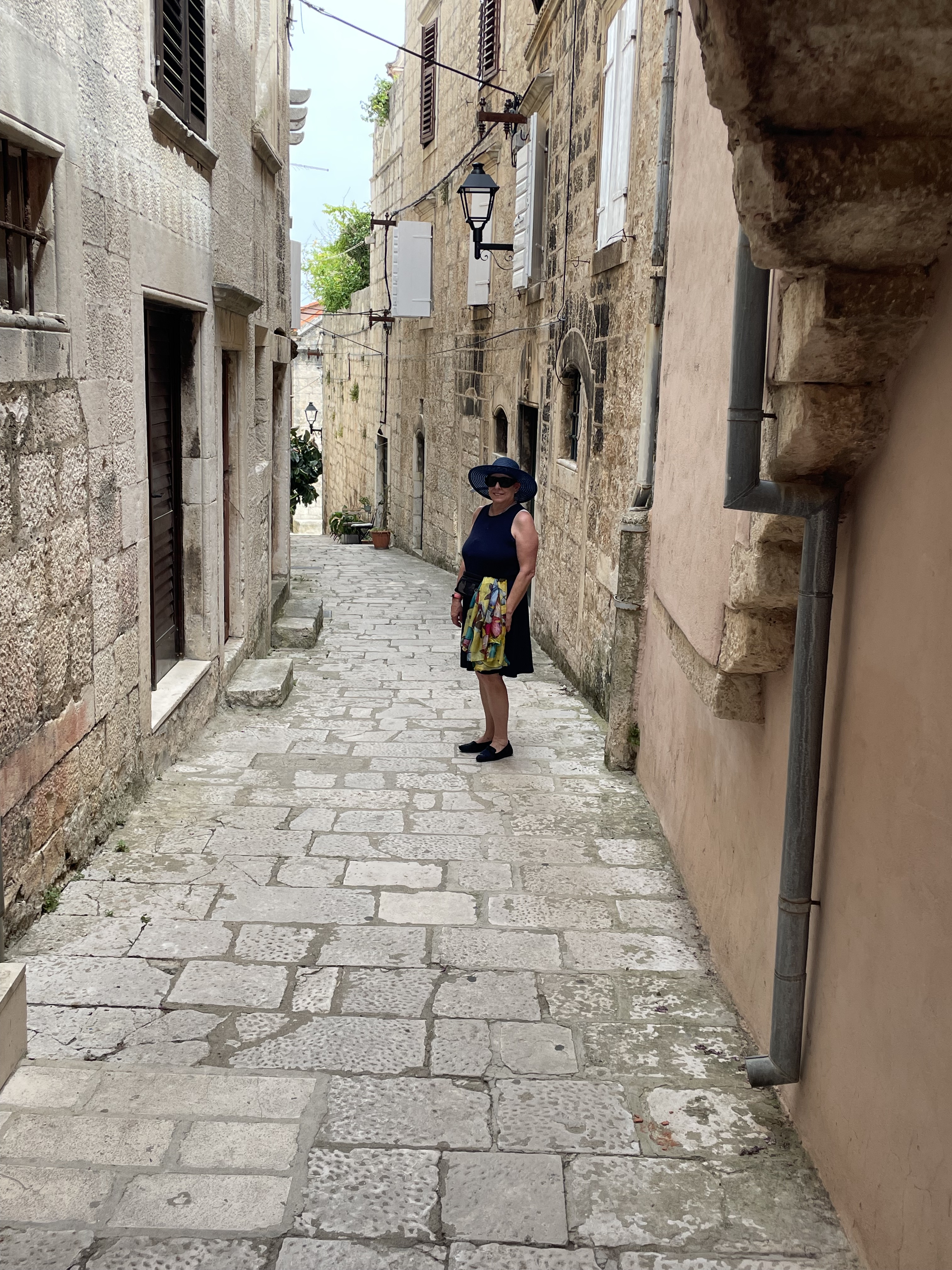 What a question. Of course I want ice cream. So I dumped my stuff in the cabin and got on the tender. By this time a lovely breeze had come up over Korcula. It is a picturesque little town and I look forward to returning next week. We did tromp around a bit and I did get warm so I’m glad I didn’t go in the morning for that reason as well as the new acquaintances I met.