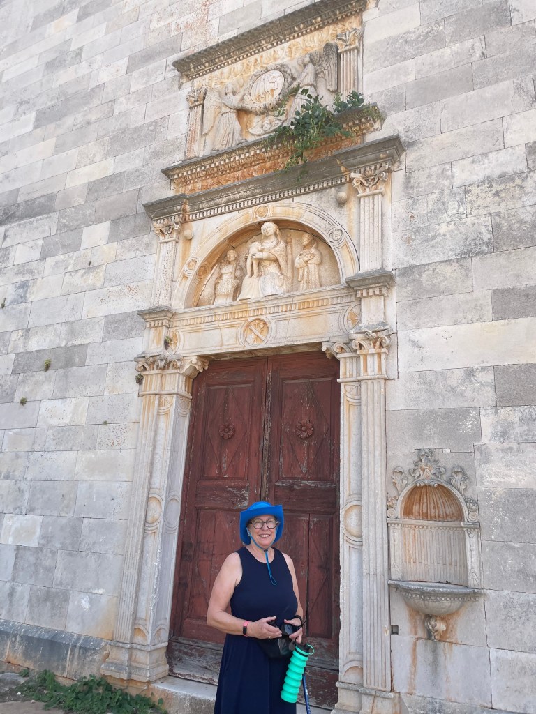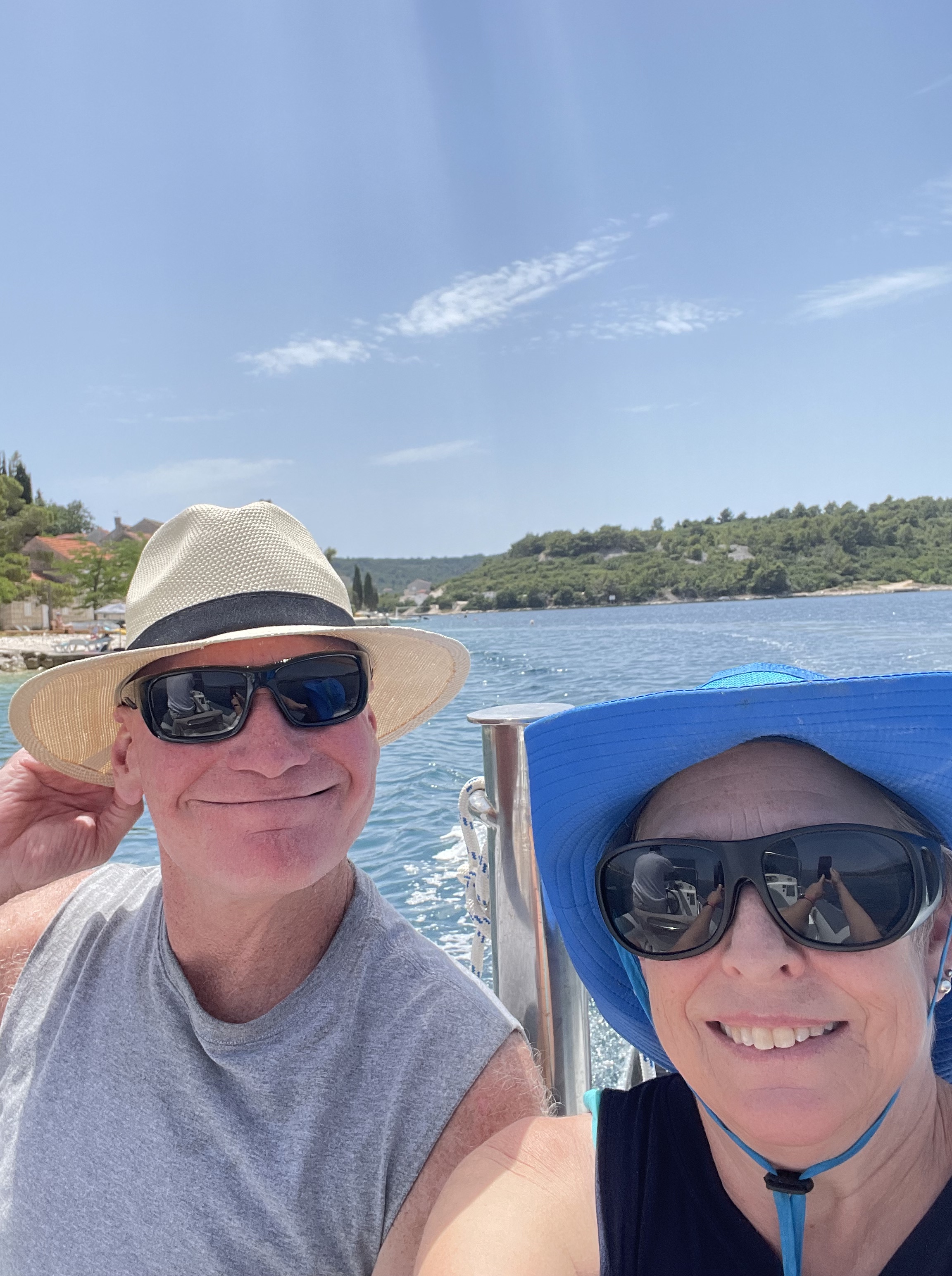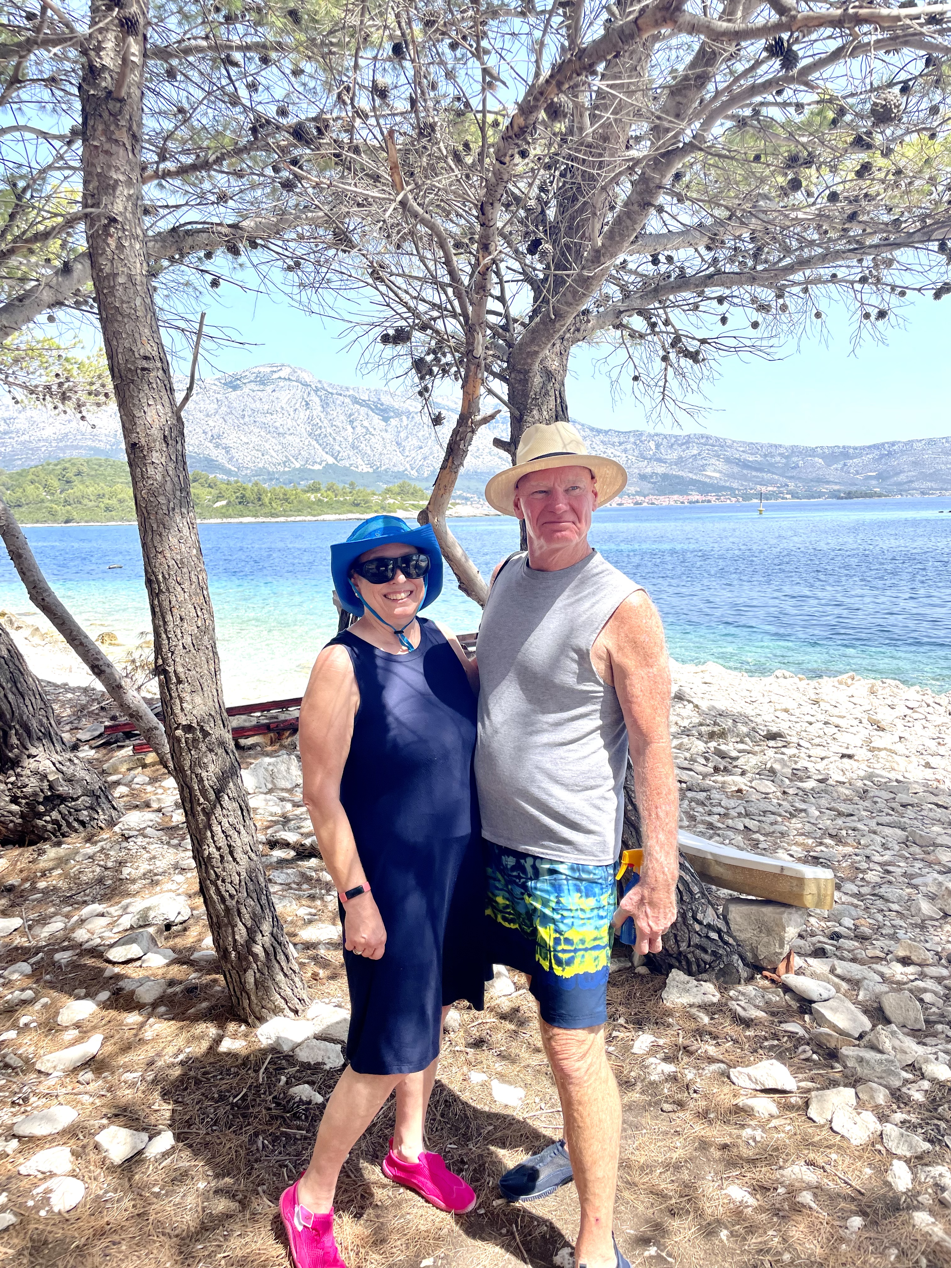 Croatia. My new happy place. Korcula is itself an island, which I did not realize before. Just as an aside, supposedly Marco Polo was born here and there is a little house you can pay money to see and souvenirs to prove it. When we were here last week and I relaxed except to tender over when Al said the words “ice cream,” he had checked out what I had read about in terms of getting around the islands. I’m not completely useless. We got together again with Heather and Peter and hired a guy to take us to two island in the time we had.