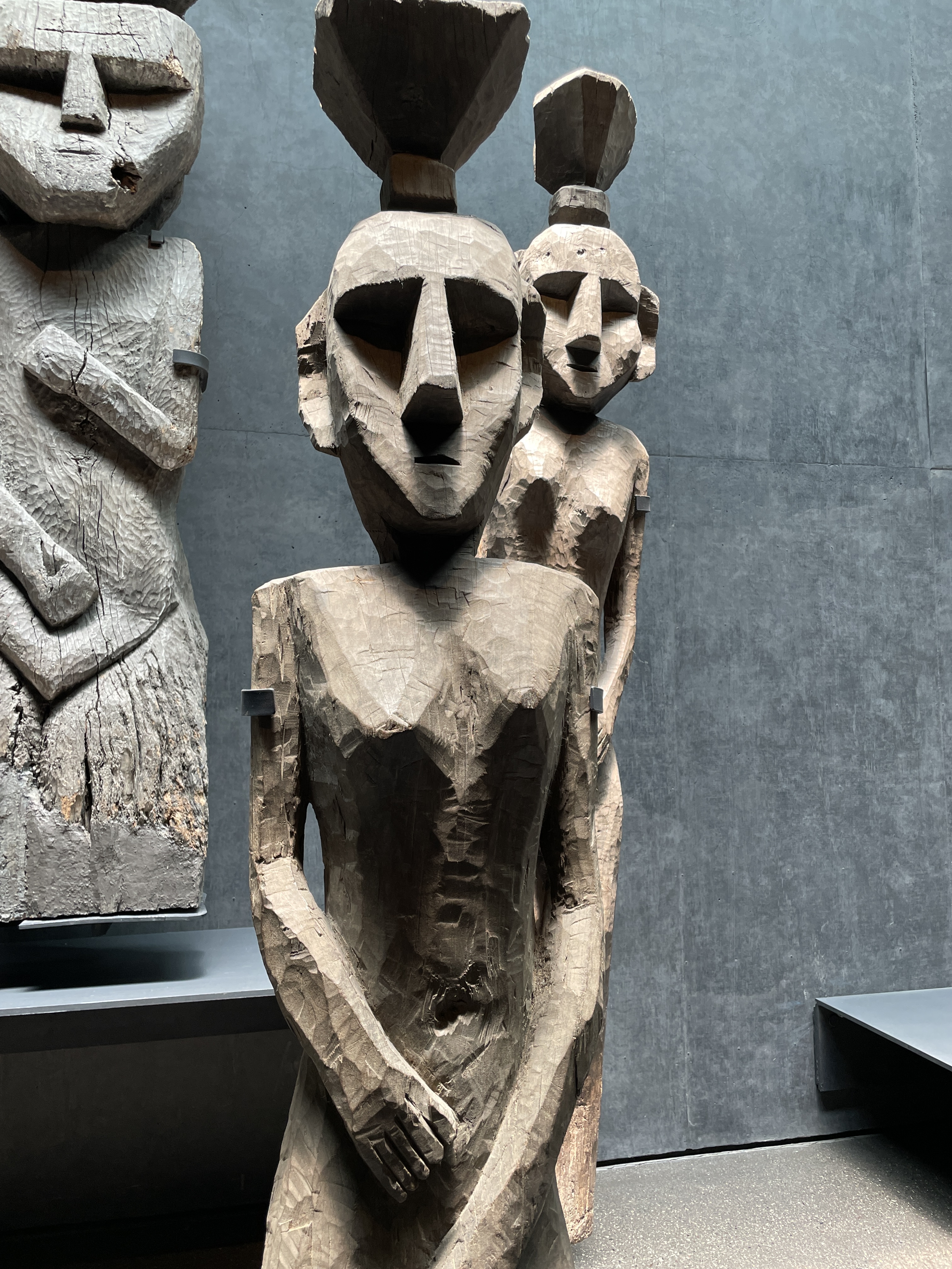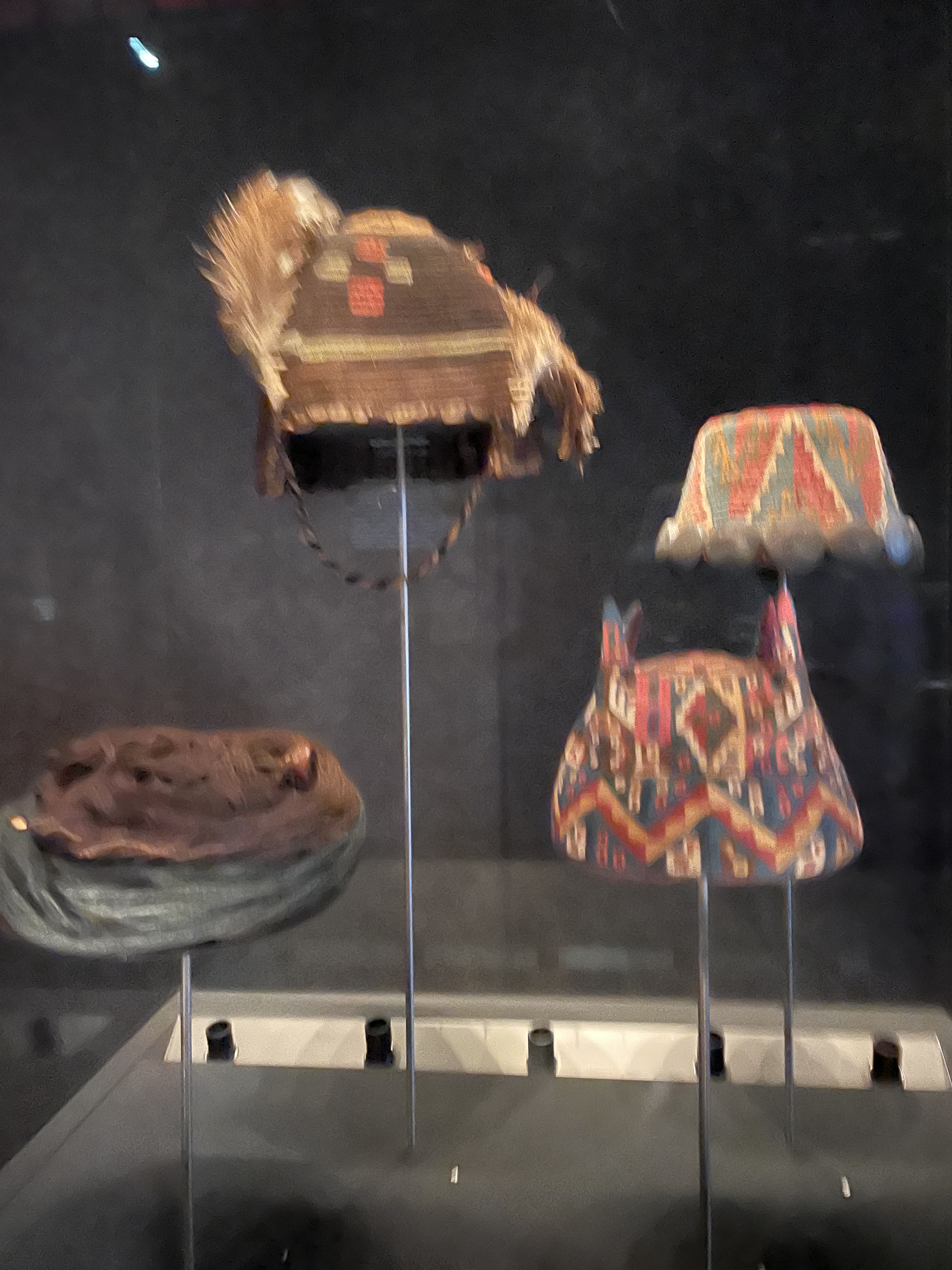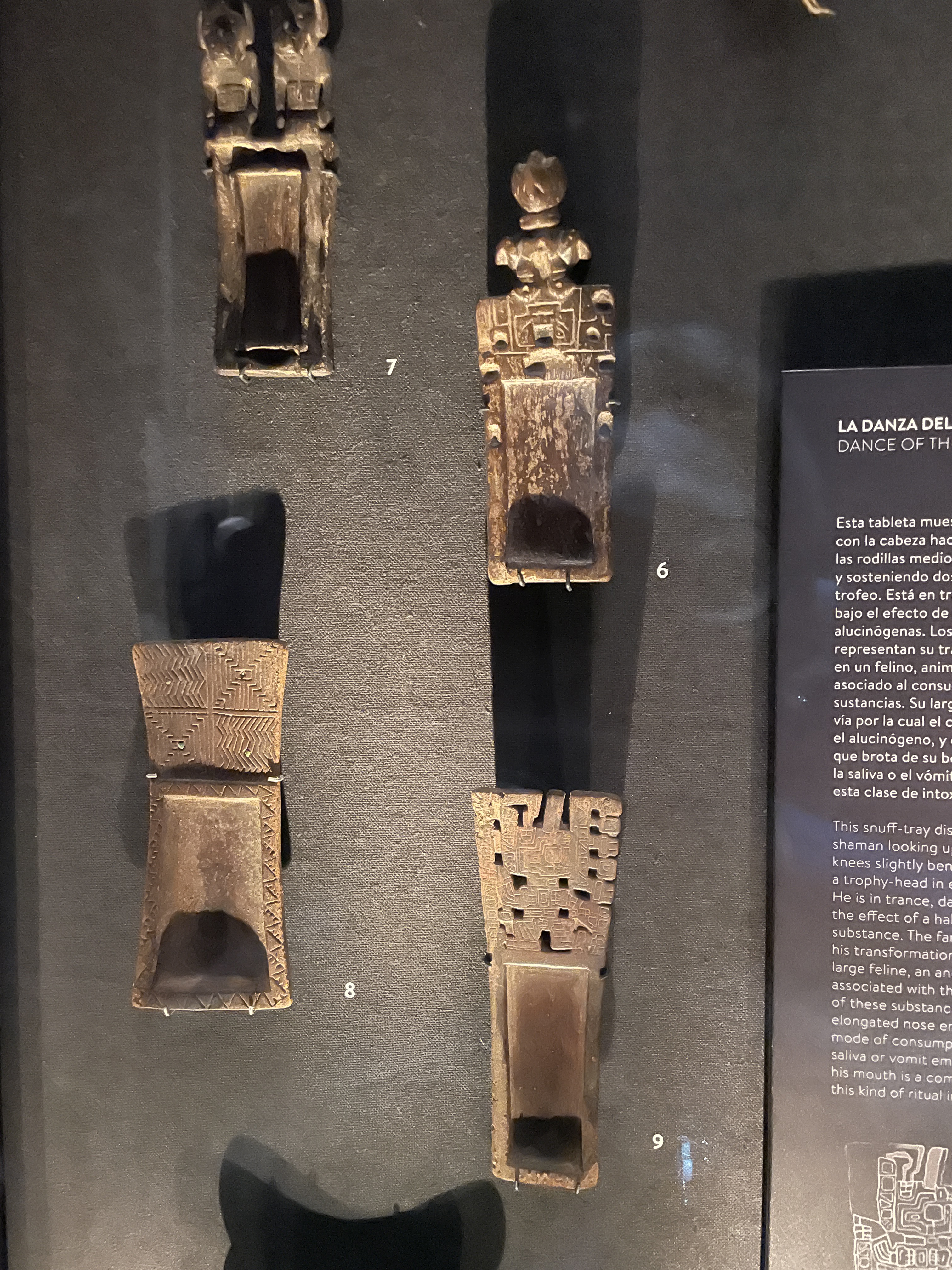 Other cool artifacts that I’ve left here for you are from different peoples/cultures over the years. I’m especially liking the hats, the string “abacus” that was used by the Incans for many possible reasons. Also what Al referred to as cell phone holders were actually snuff trays. The shamanic culture was (is) big into ayahuasca and other hallucinogenic substances, becoming one with nature and the universe, that type of thing. If I were a younger woman and not so responsible….maybe when I’m too old to give a damn, I don’t know. I was a relatively good girl in the 70’s so I missed all the fun. Now I’d probably just have a nervous breakdown if I saw a talking fish or something. The big wooden figures in the photos were “gravestones” from one of those ancient cultures.