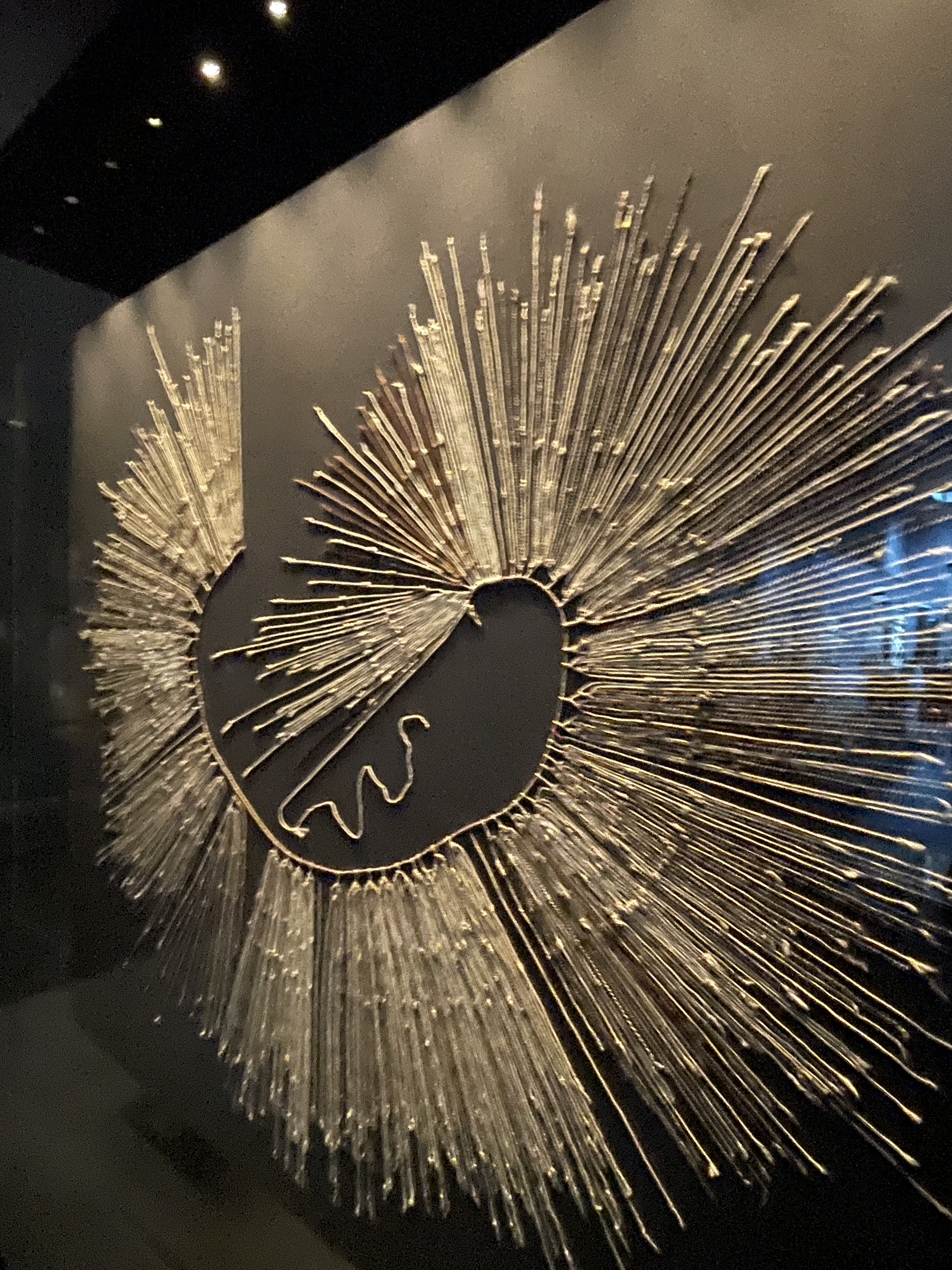 We were headed to The Chilean Museum of Pre-Columbian Art (Museo Chileno de Arte Precolombino). Highly regarded as one of the finest pre-Colombian museums in South America, we were unfortunately limited to the first and lower level as the upper level was closed, but that’s ok. Saw lots of cools stuff as usual. What strikes me about pre-Columbian history in both Peru *(I really need to sit down and recap that trip, it means more now that we’re here in Chile) is how long ago ancient people inhabited this part of the world. I learned, for example, that the ancients here practiced mummification thousands of years before the Egyptians. Their method involved removing the viscera and muscles and replacing same with twigs, feathers, fur, etc. before wrapping.