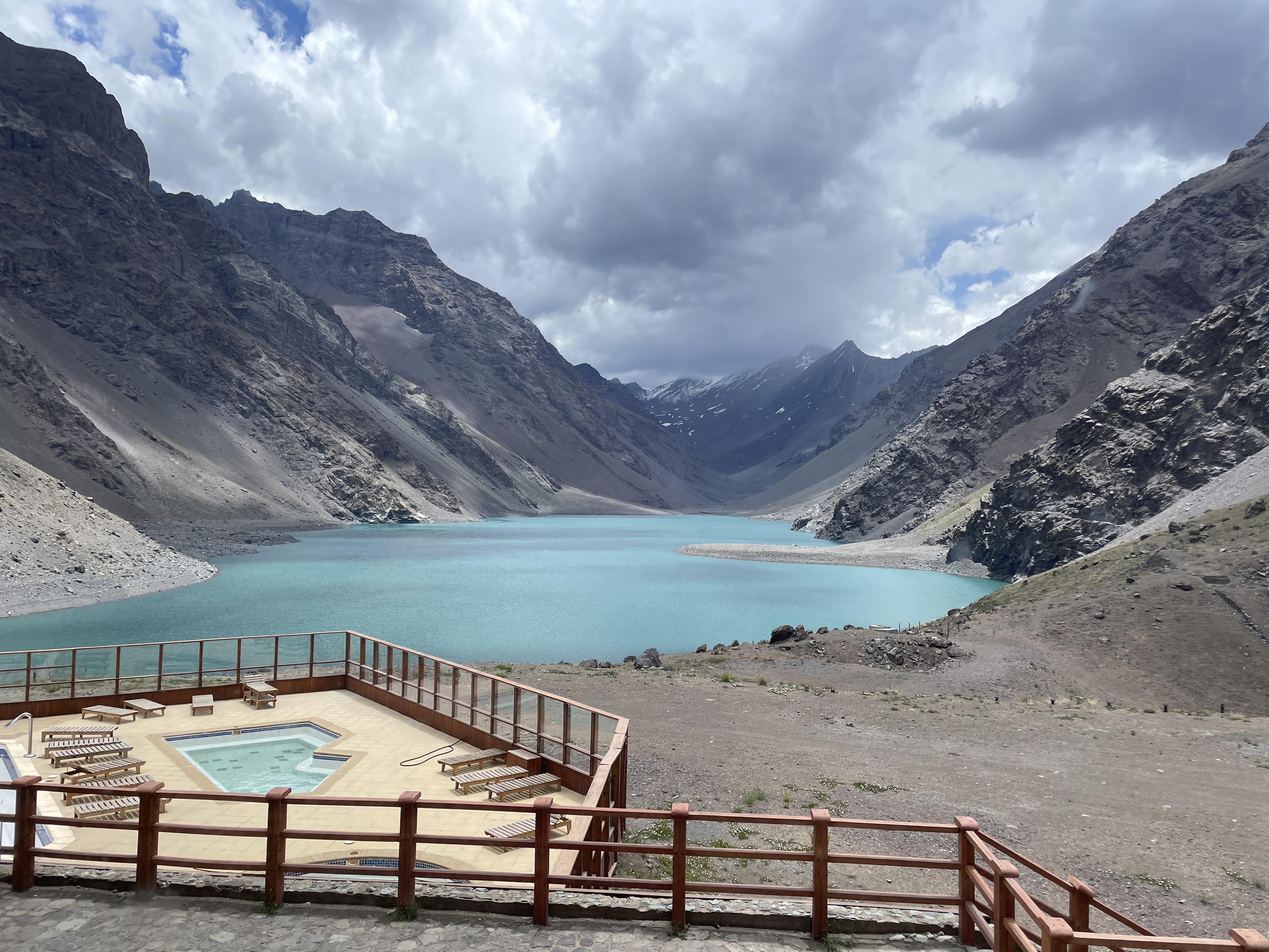 Monday we were up bright and early for a ride to a winery and then to Portillo Ski Resort in the Andes. This is where the crazy expert ski type people from all over the world come to ski. Looks like it’s straight down to me. A big fat no. I only do easy slopes now. We had lunch overlooking Lake of the Inca and the rugged mountains The Three Brothers. Reminded us of Lake Louise in Banff Canada. The mountains on the ride up (see corkscrew road! A thoroughfare for semis!) were like first grade drawing mountains, rising right up with no foothills and impossibly pointy peaks. On the way back we stopped at an adult petting zoo, ie llamas. Been there done that in Peru so I opted for convincing another woman to join me in playing on a relic from my childhood – a see saw. I think I’ve already written a blog on that lack of same in the USA is one of my pet peeves – how are kids supposed to intuitively learn about levers now? – so I won’t bore you here.