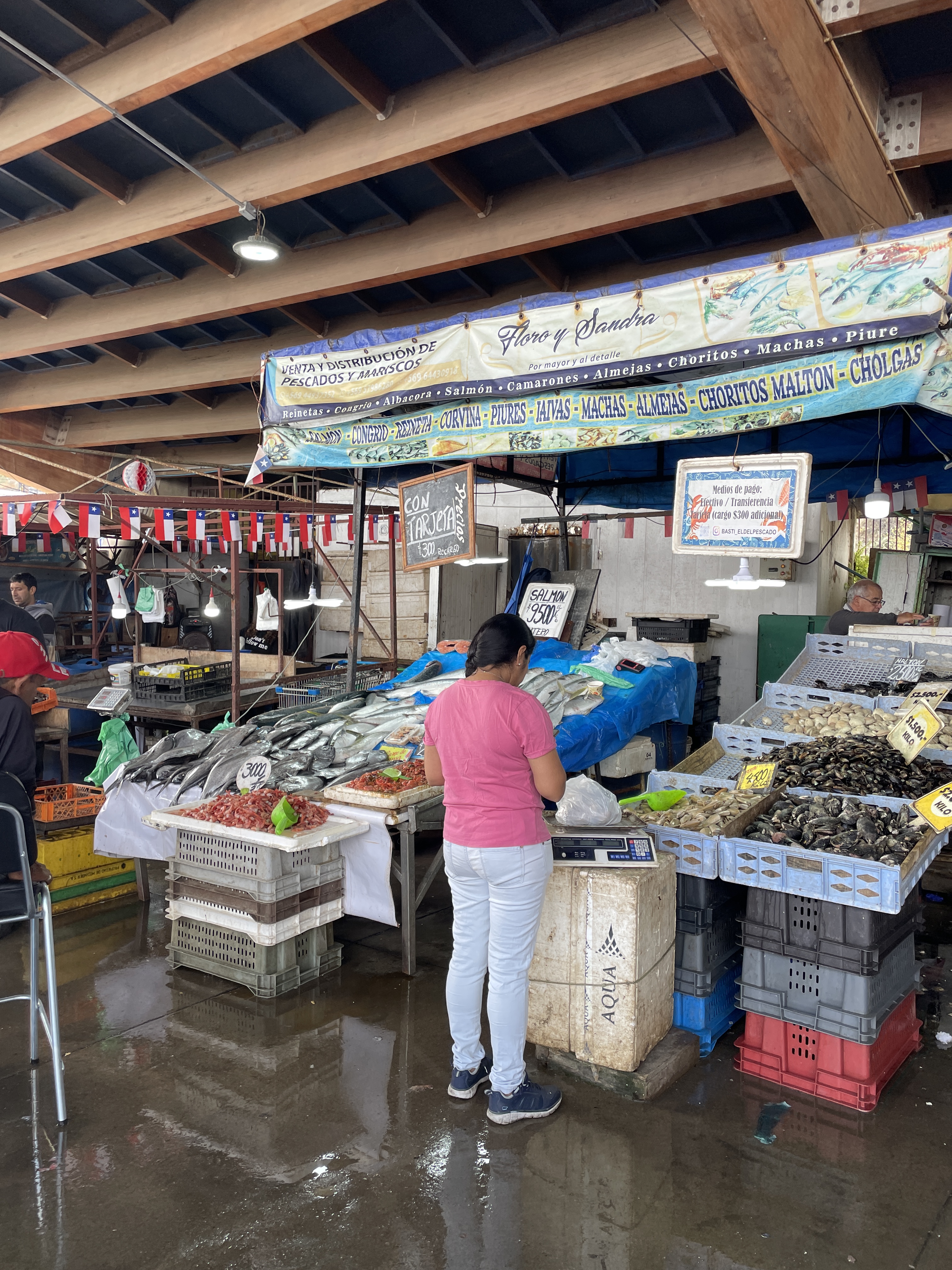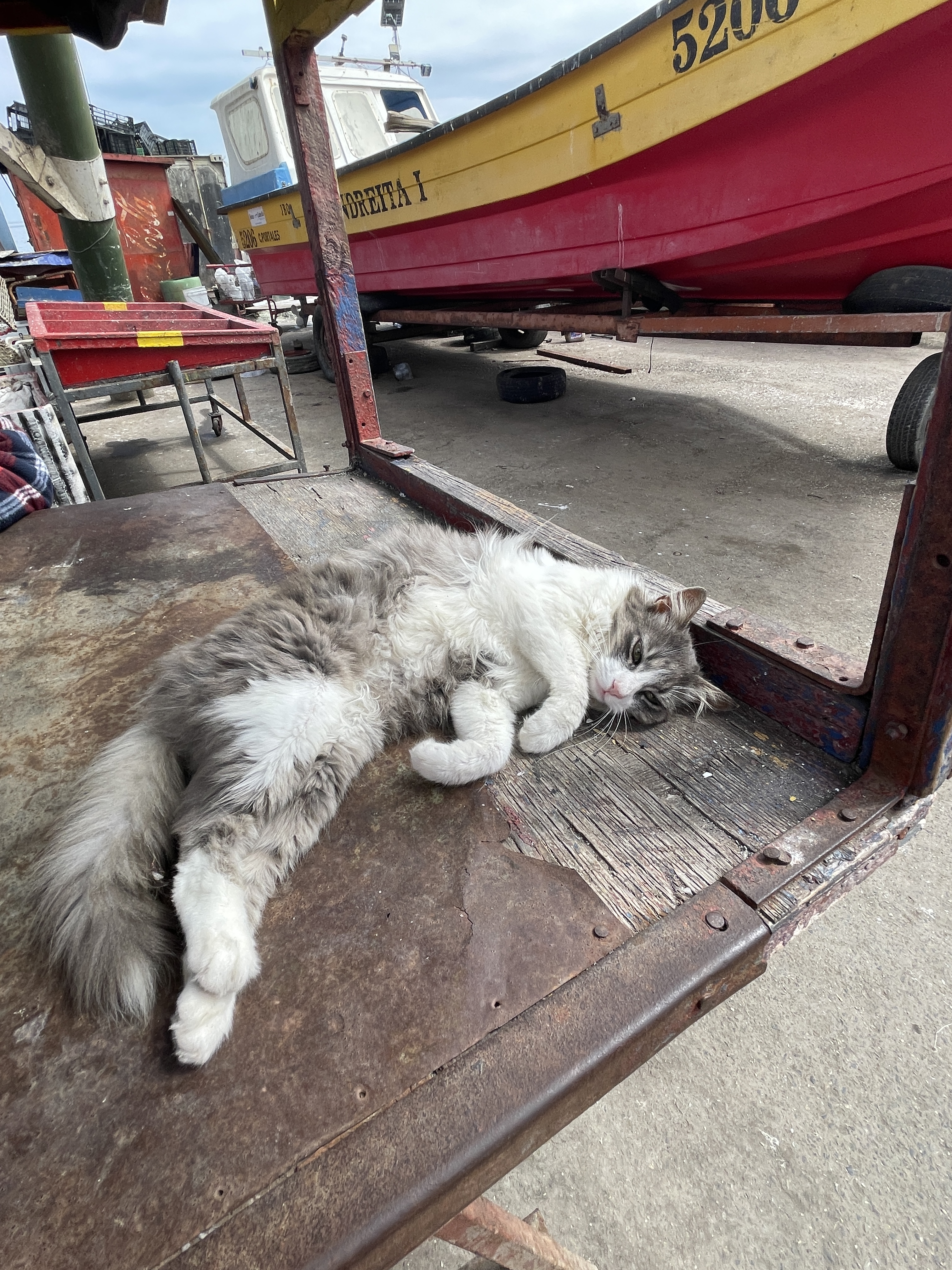 Then off to the fish market of Valparaiso and I was in fishy heaven. All the boats were in from the morning and boy was I jealous. I promised myself I would really find out where the fish market is near me (our tour mates said San Pablo was the place to go) but realized I probably wouldn’t really know how to choose the best so I’ll trust my local Albertson’s (they really do have a great fish buyer) and maybe hit some of the Asian markets in Orange County and let the professional buyers do it for me. Saw our first cat in Chile there (everywhere else in the world cats rule everything) and it figures it would be at a fish market. There were also sea lions wrestling and dancing in the crashing surf. Our California sea lions seem to just loll around and sun, but these were acting like the sea puppies that they are.