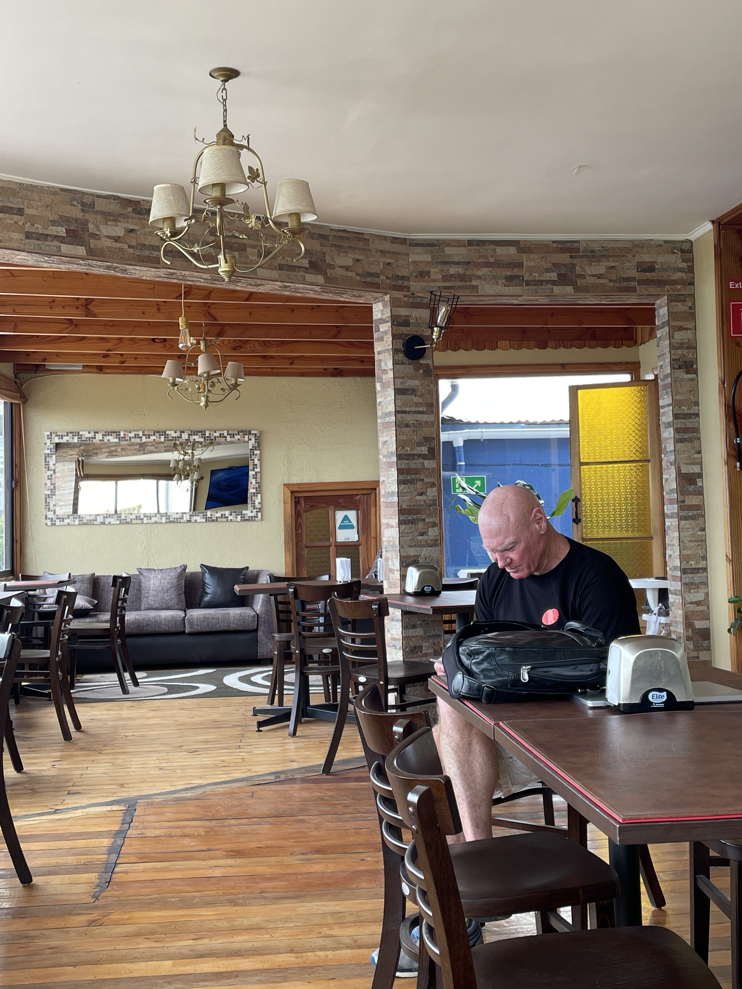 Then on to San Antonio, an active port city. We are in a little mom and pop hotel, kind of a three story house subdivide into rooms really, overlooking the port. Plenty of music, souvenirs from China stalls, food stalls. We were so excited to wake up to see our cruise ship. Except we woke up and there was no cruise ship. Turns out the dock they need had to be vacated by another ship that hadn’t been able to get out because of rough seas. Or at least that’s the rumor that was going around. It finally did make it in so we walked our main luggage about 15 minutes to the terminal to check our luggage and then came back to the hotel restaurant that isn’t a restaurant right now. As I write there is live music across the street in the plaza, Al is waiting patiently for me to finish writing, and I’m looking at the sea and plan on taking the advice of another passenger who has taken this journey before: 25 mg Dramamine every day is a must. Her photos of the Antarctica portion of the trip looks like a dream – walking among penguins, whales frolicking within sight of the ship, Orcas and of course ice and rocks and ocean. This shit is about to get real!